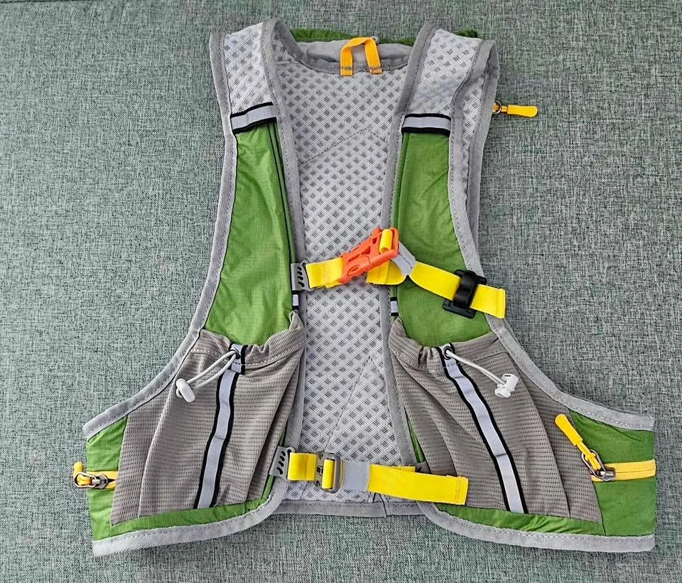 Brand new unused lightweight hydration vest for running, hiking, and cycling. Several pockets for storage including one that holds a 2.0 L water bladder in the back. Cash only.