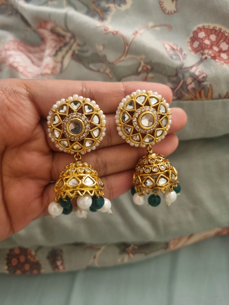 These beautiful Maria B. Jhumka earrings are a stunning addition to any jewelry collection. Great for adding a dressy colorful vibe to your outfit. They come in their original box. Brand new/ unused
