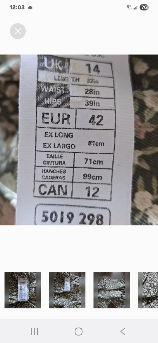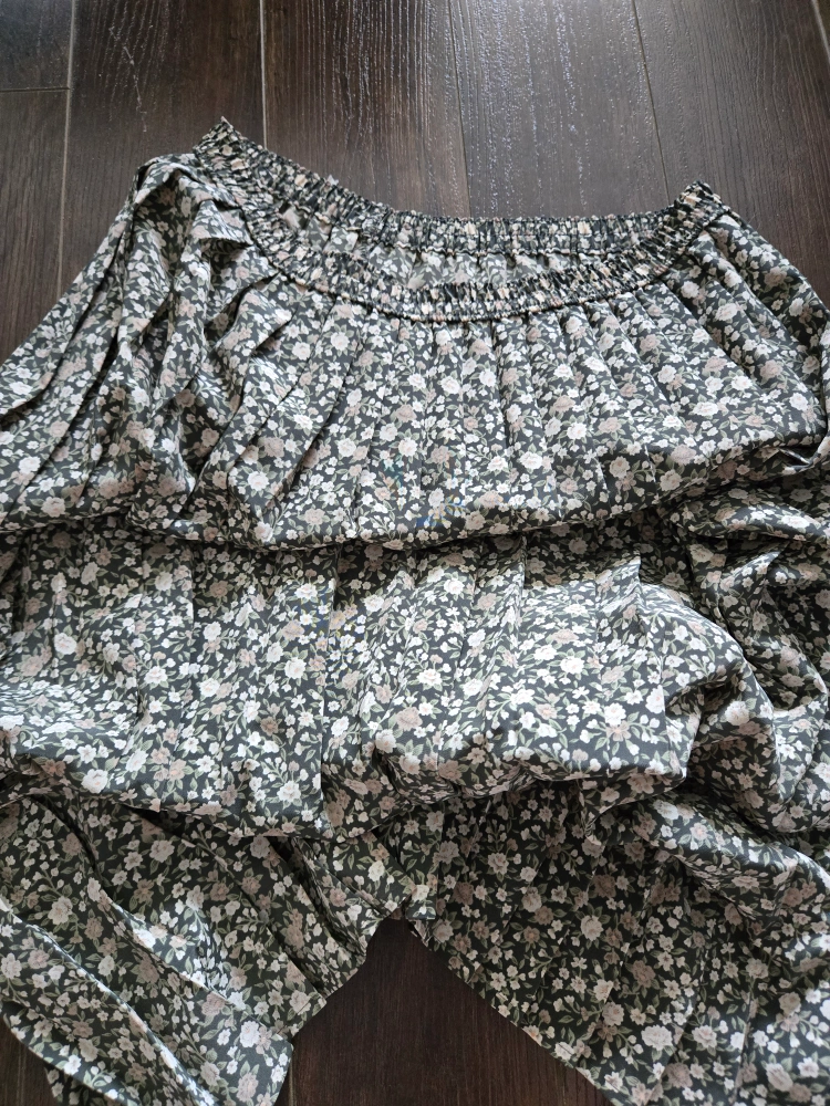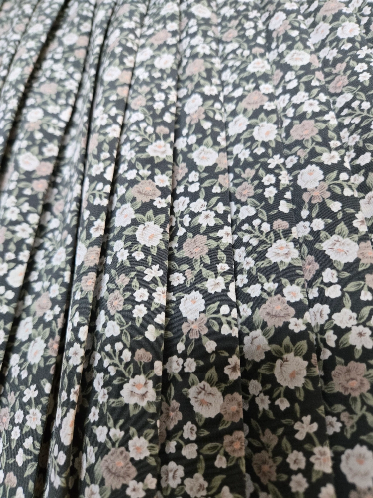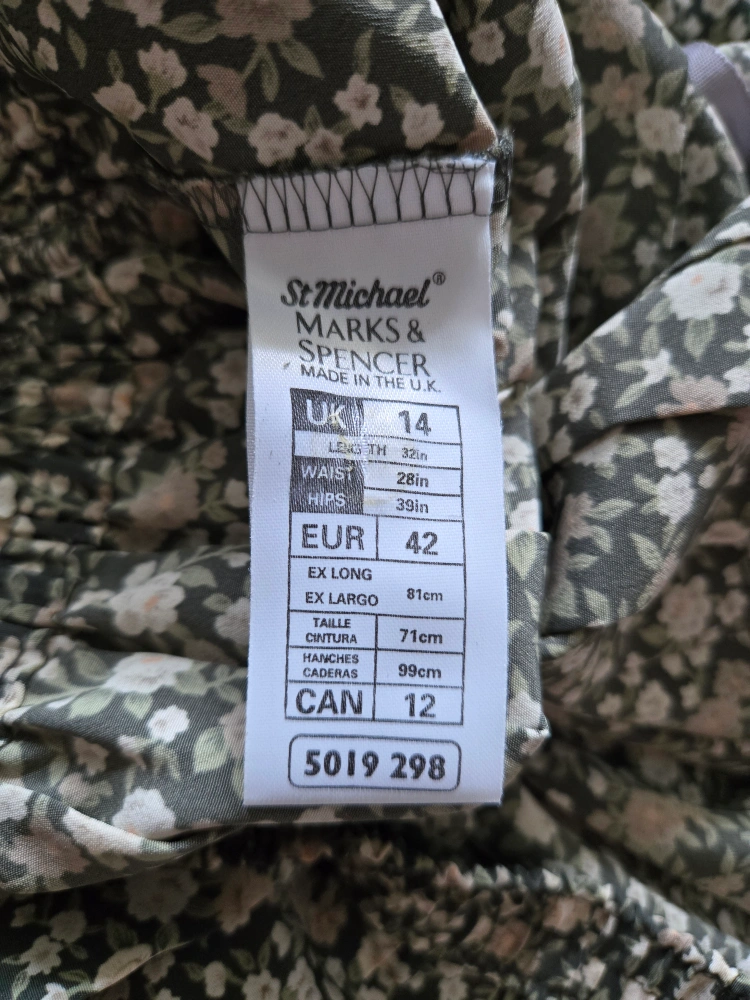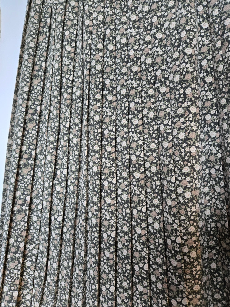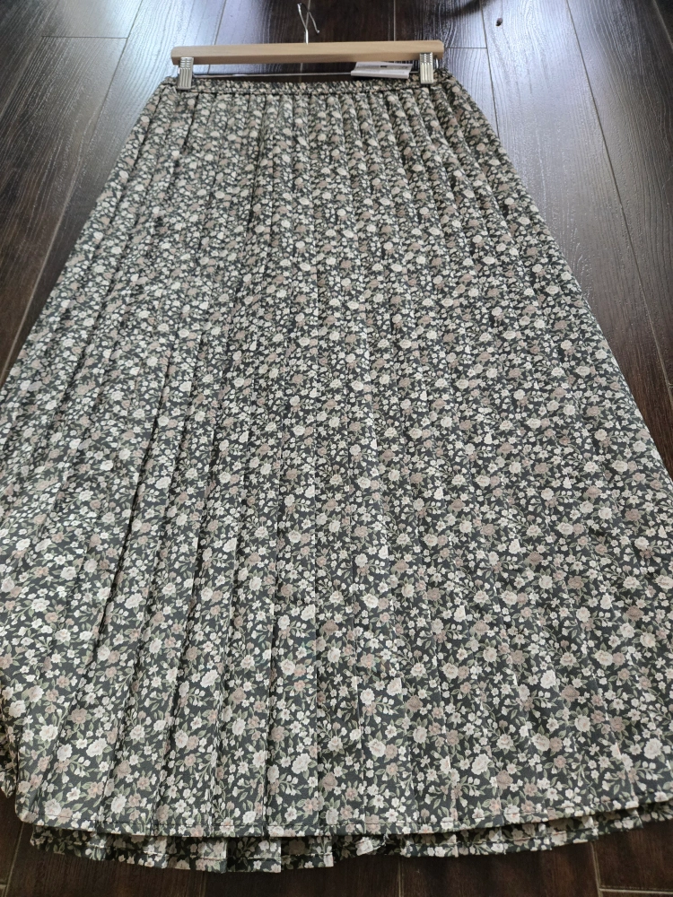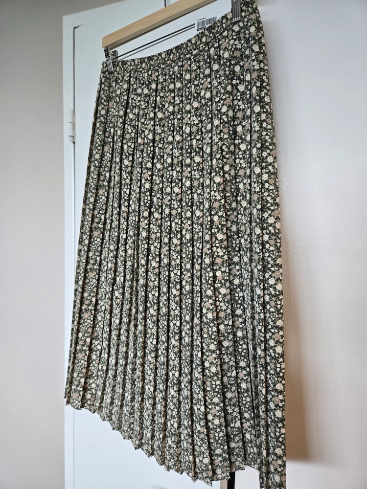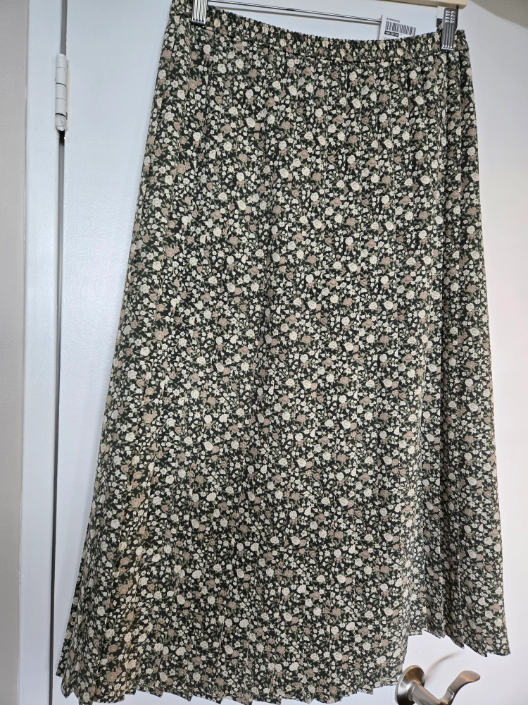 Selling a cute floral pleated skirt. The tag shows the size is 12 (Canadian size). The waist measures 39 inches. Perfect for adding a touch of floral to your wardrobe!