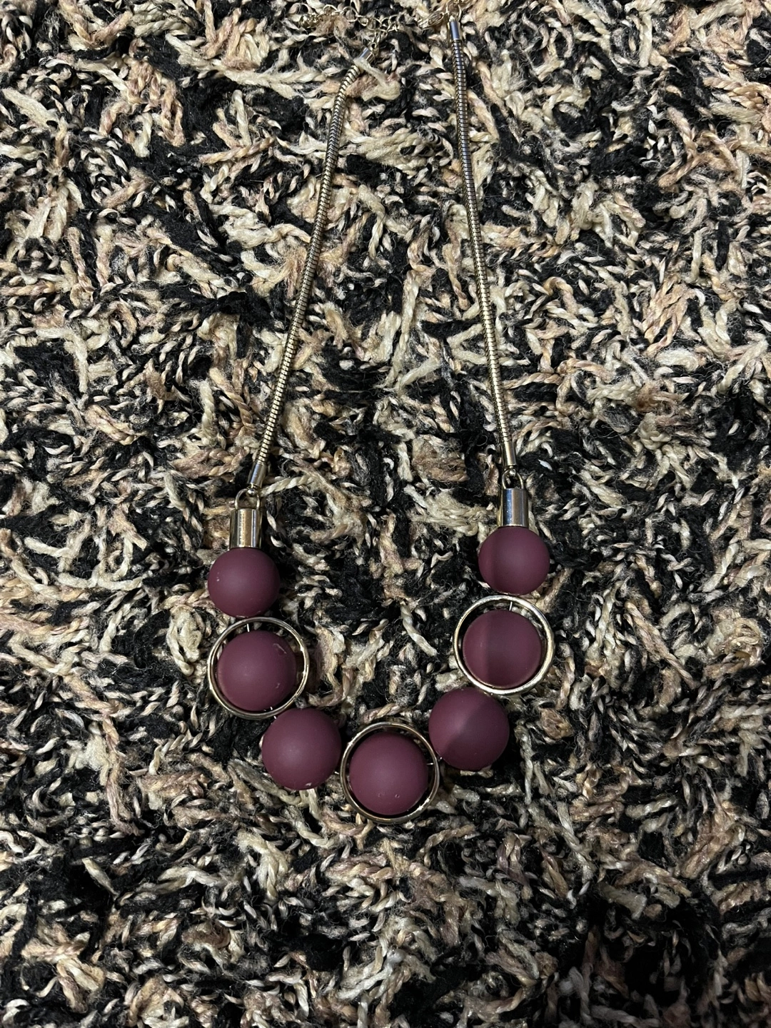 A stylish maroon beaded necklace. This necklace is in good condition and ready to accessorize your outfits!
