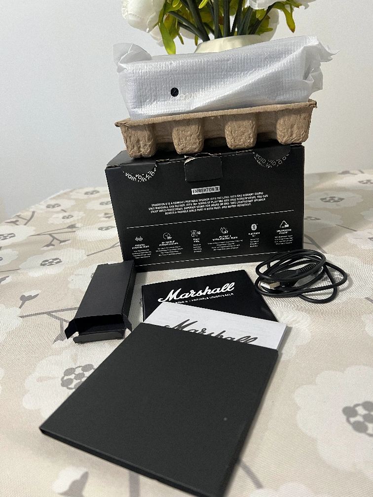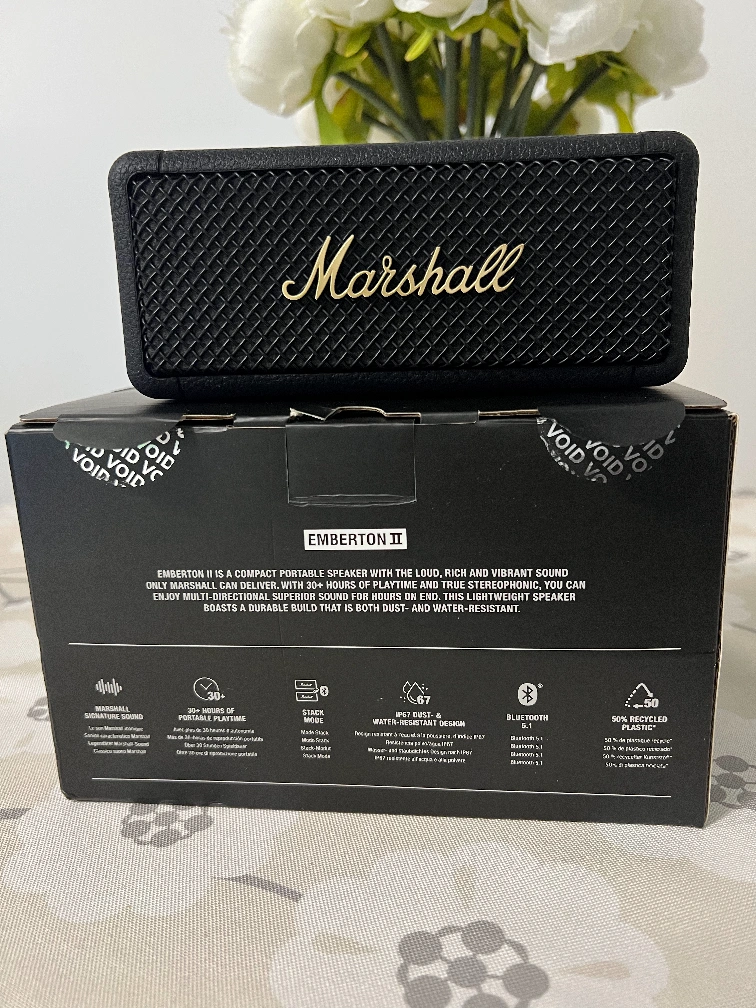 Selling a brand new Marshall Emberton II compact portable speaker! It delivers rich, vibrant sound and boasts a durable, water-resistant design. Enjoy multi-directional superior sound for hours on end. The box is included, along with all original components like the charging cable and instructions