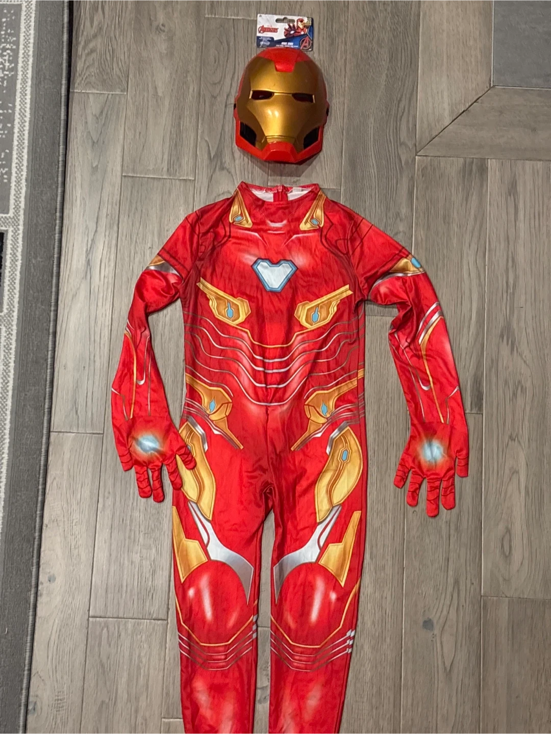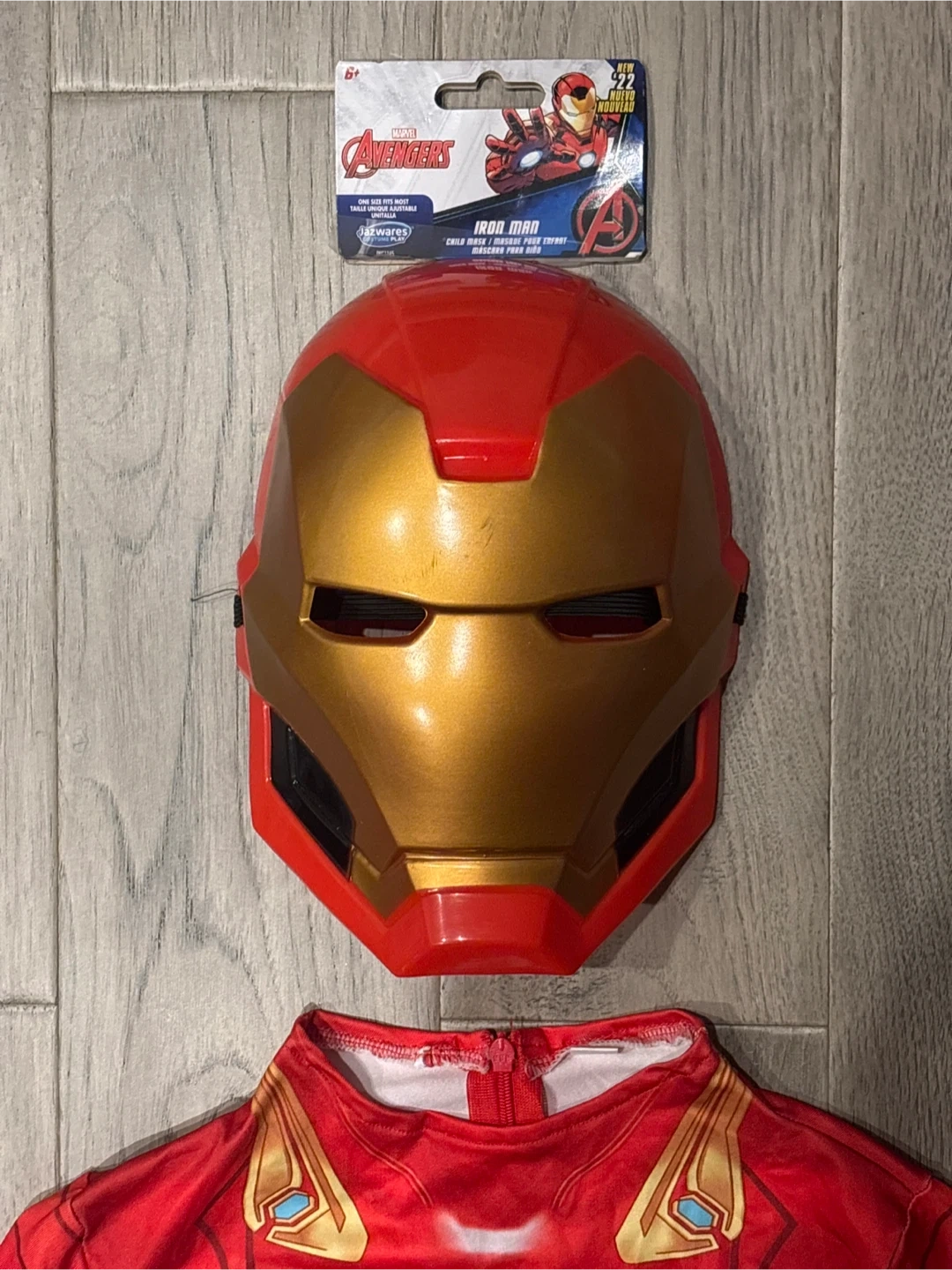 Get your little one ready for action with this cool Iron Man costume! It includes the mask and jumpsuit, perfect for dress-up or Halloween. The costume is a size 6-7 and is in great condition, ready for a new adventure