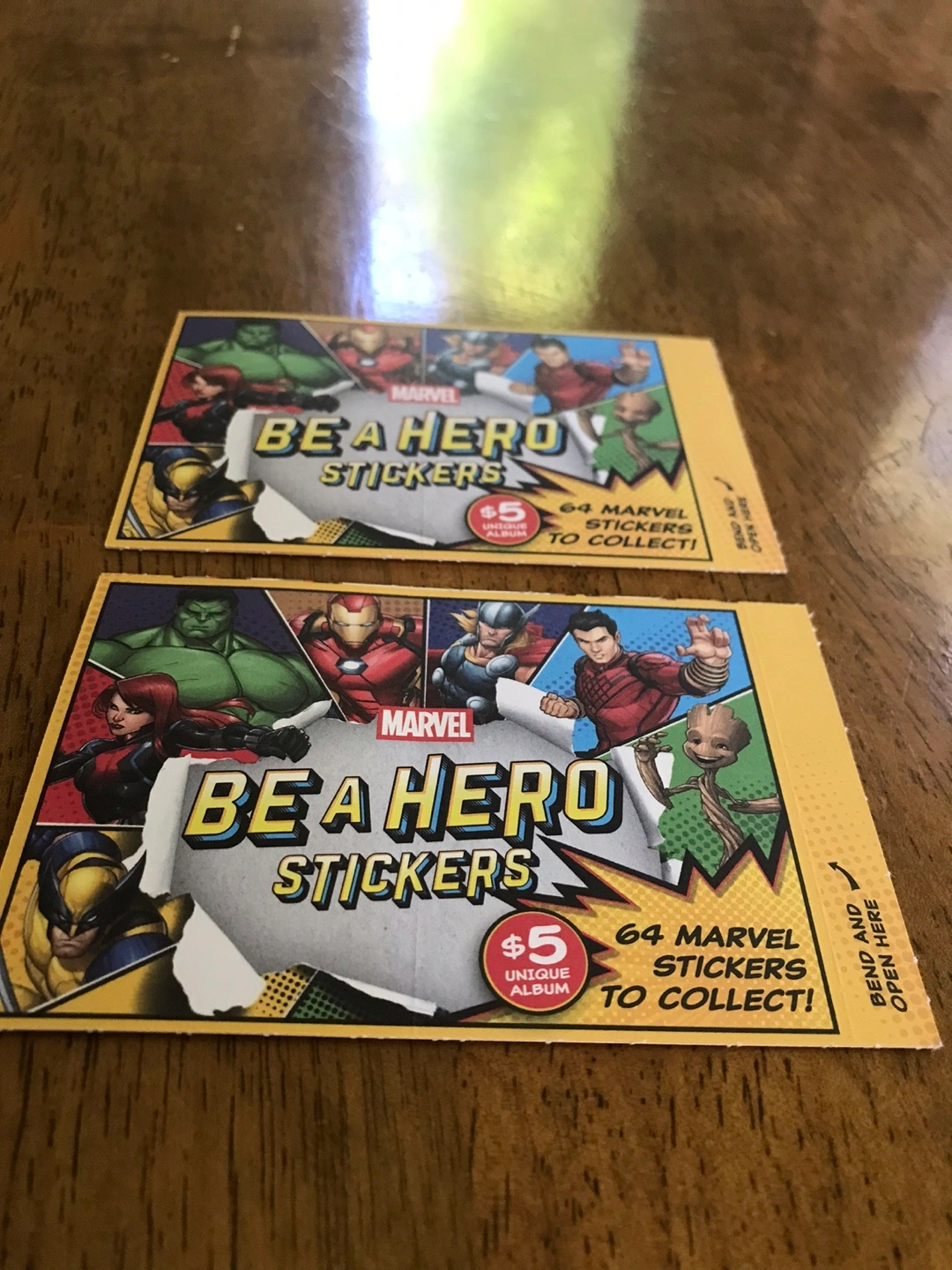 2$ for both.Get ready to assemble your favourite heroes with these Marvel Be A Hero stickers! Each pack contains 64 unique Marvel stickers to collect, featuring iconic characters like Iron Man, Hulk, and more. A fun and exciting way to show off your love for the Marvel universe