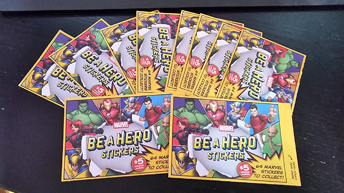 Giving away a pack of 10 Marvel Be a Hero Stickers (40 total stickers) All unopened, good for anyone trying to complete their collection ;) We can't meet somewhere in North Delta, ideally the Superstore on 120th street. I don't do delivery for free items, please don't ask ๐ฎโ๐จ