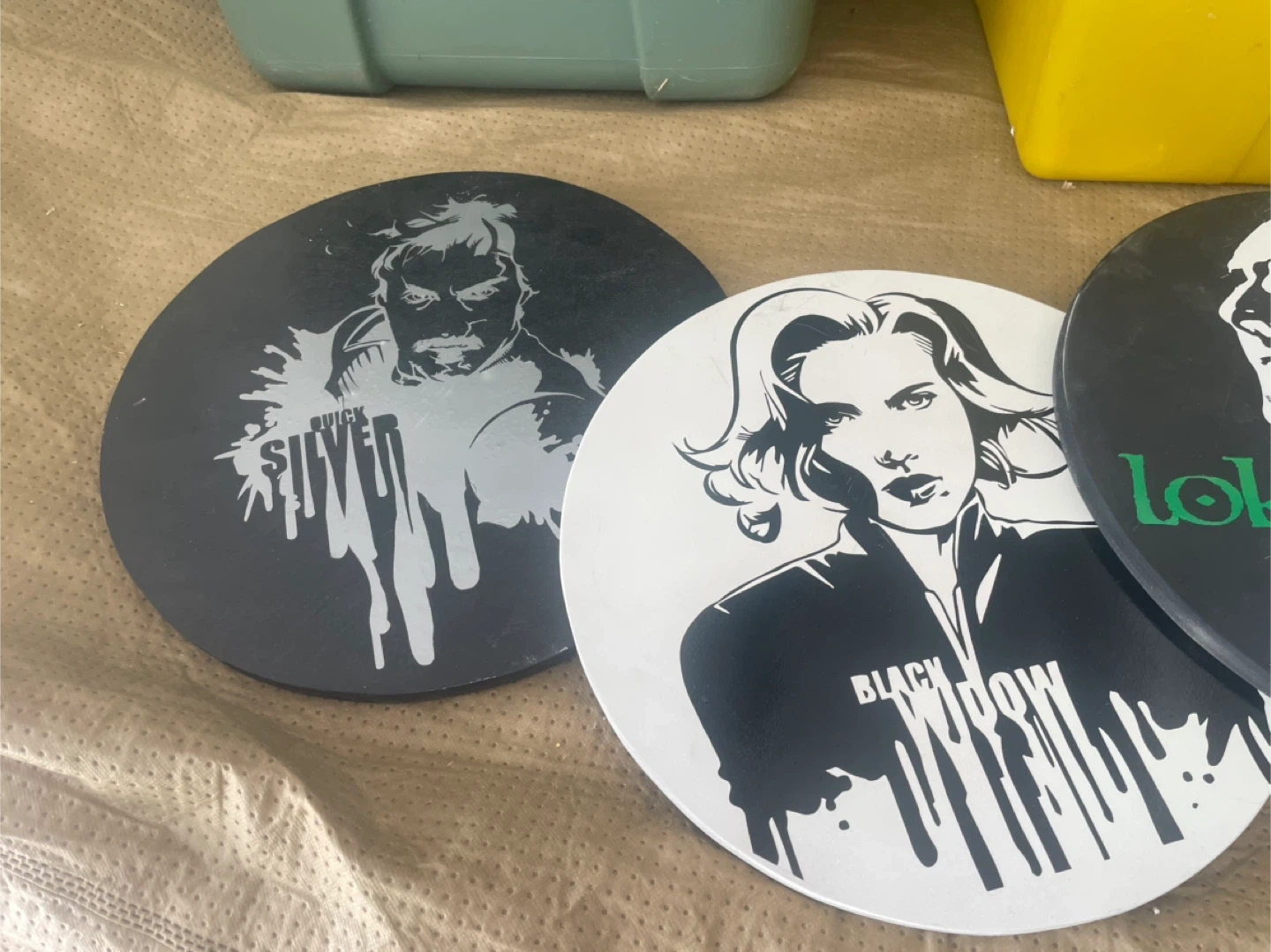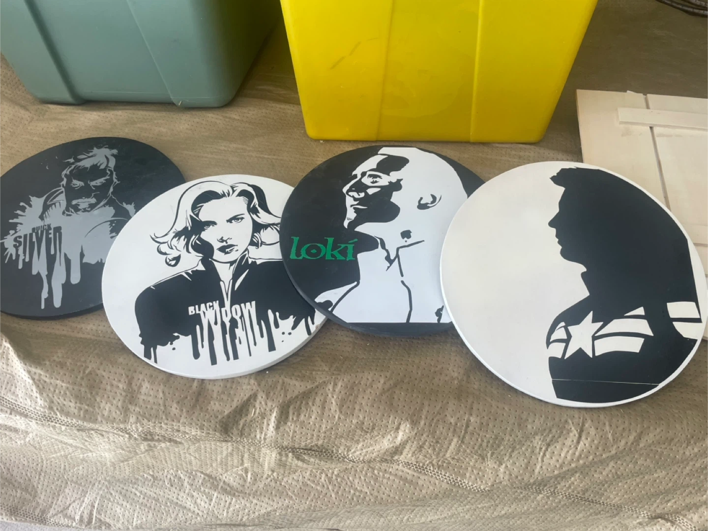 Selling a set of Marvel character 10” wall pictures on wood ! Includes Black Widow, Loki, Quicksilver and Captain America. They're in great condition and ready to display