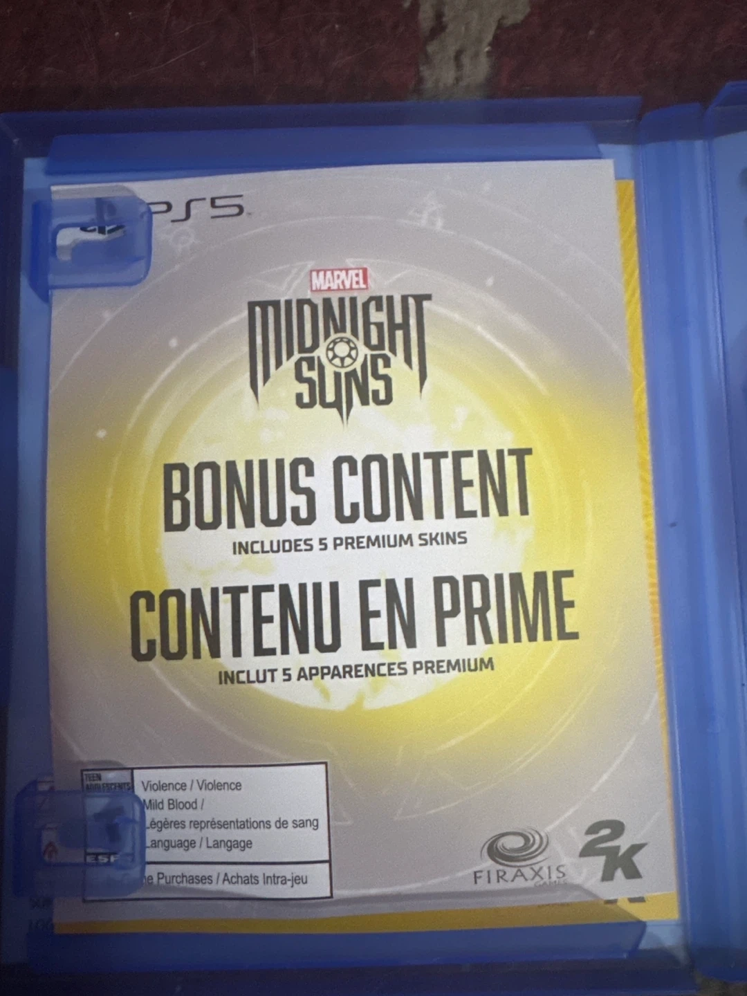 Selling Marvel Midnight Suns Enhanced Edition for the PS5! Includes bonus content with 5 premium skins. Rated T for Teen.