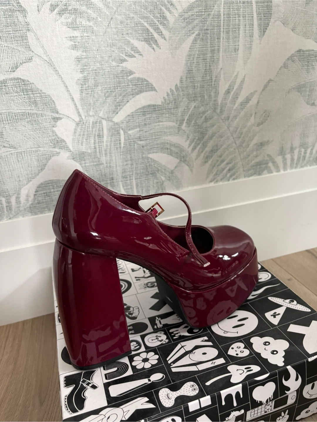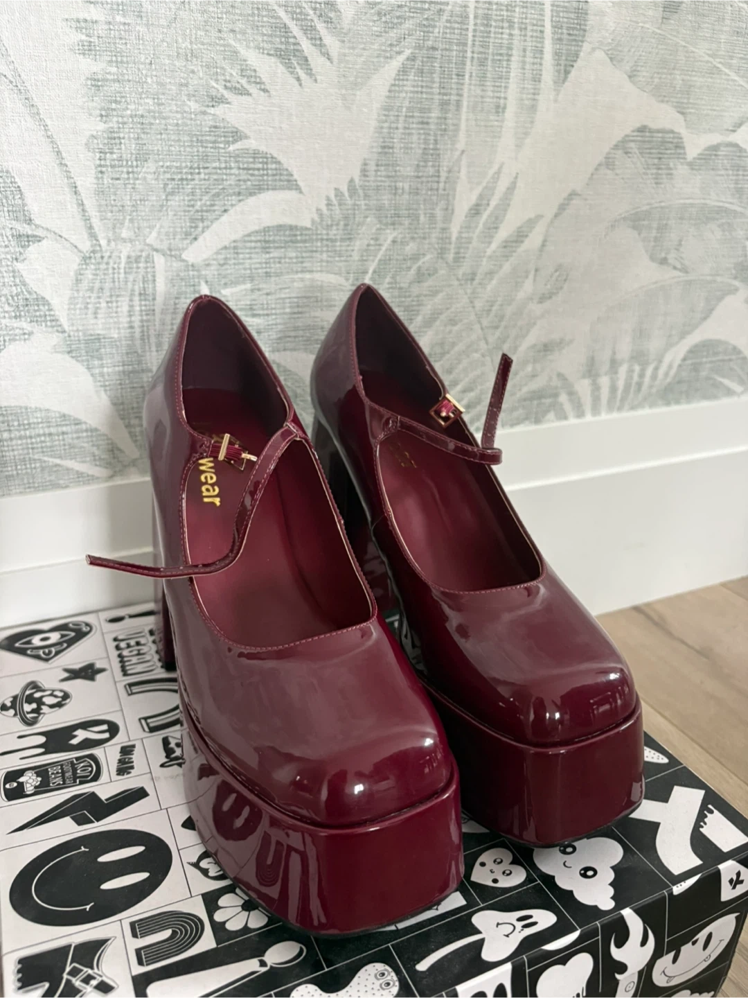 These Koi platform Mary Jane heels are in perfect shape and ready for a new home! They're a beautiful burgundy colour and feature a chunky, block heel. Perfect if you’re looking for some chunky shoes to add to your collection! Never worn out before. Open to negotiation for the price