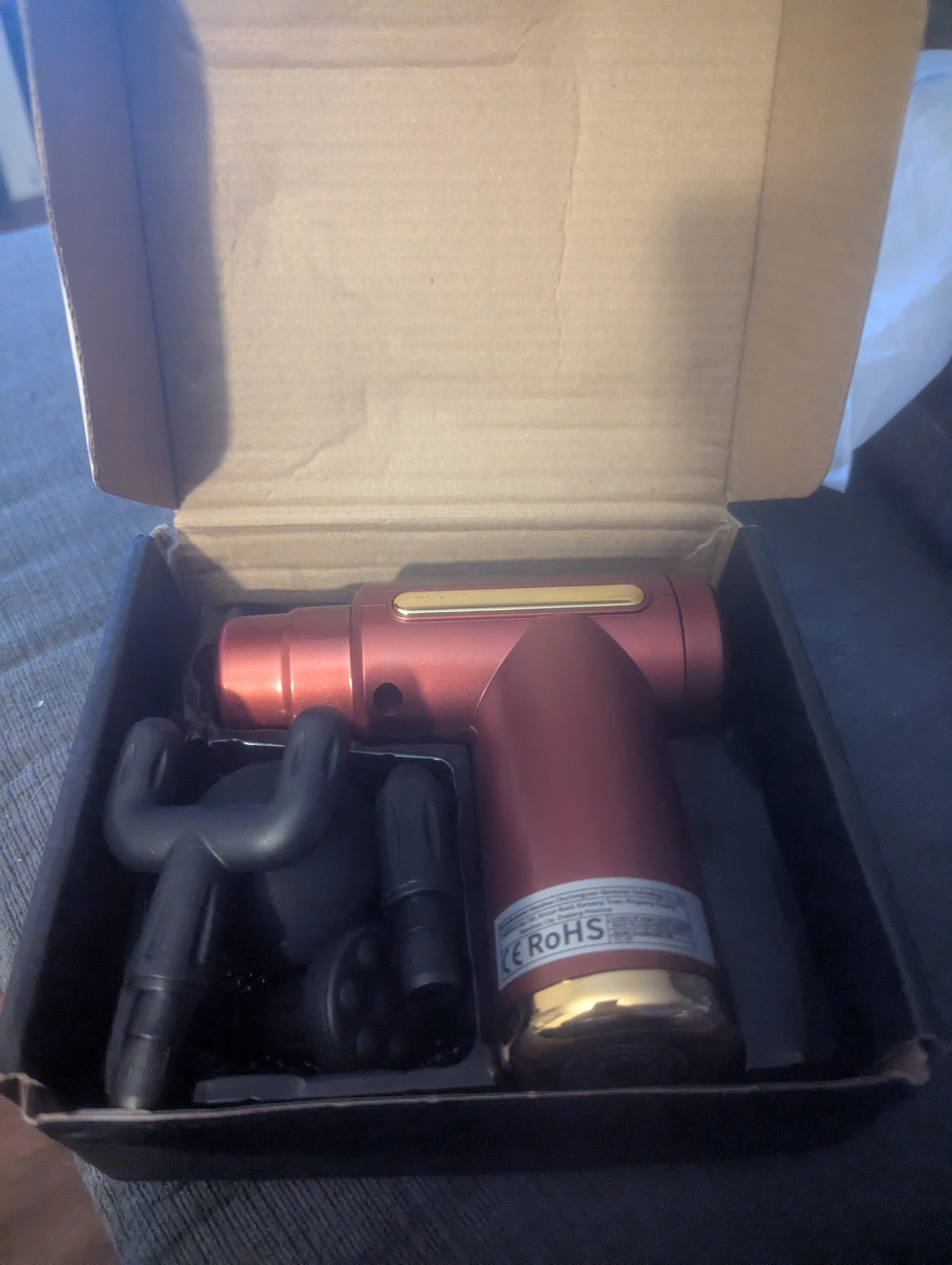 Red Massage Gun New In Box Comes with 4 attachments and USB charging cable. Works great, simply no longer use