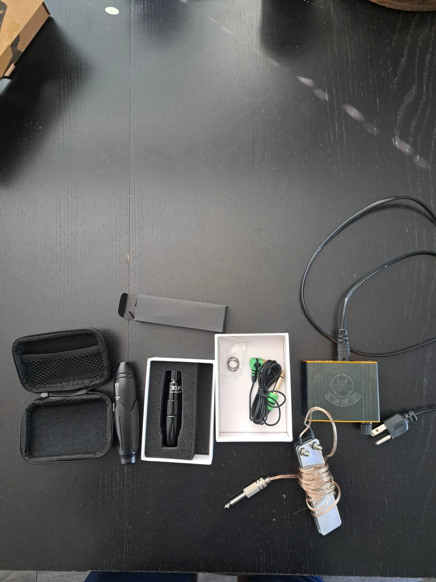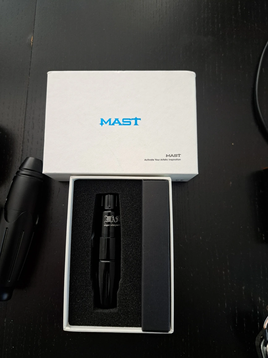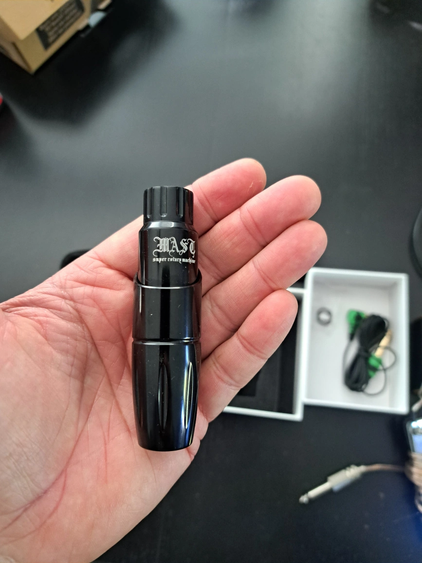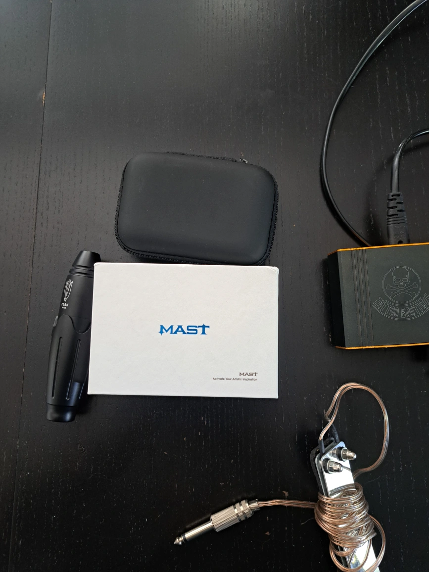 Selling a MAST and ACORN rotary tattoo machine in black. It's in great condition and comes with all the components you see in the pictures, including the power supply foot pedal and RCA cable. Both for 80.00