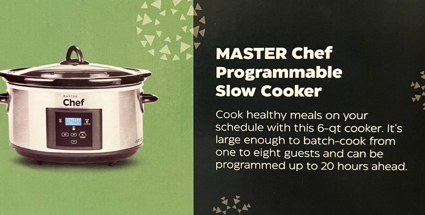 6-qt slow cooker. Can be programmed up to 20 hours in advance.