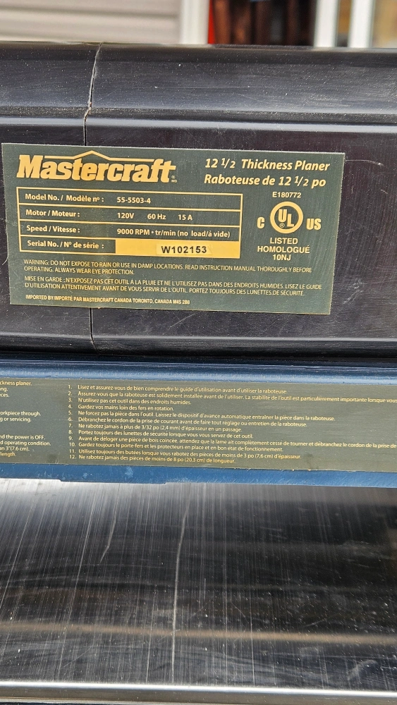 Selling a Mastercraft 12 1/2" thickness planer. It's in good working condition and ready for your woodworking projects! The model number is 55-5503-4.