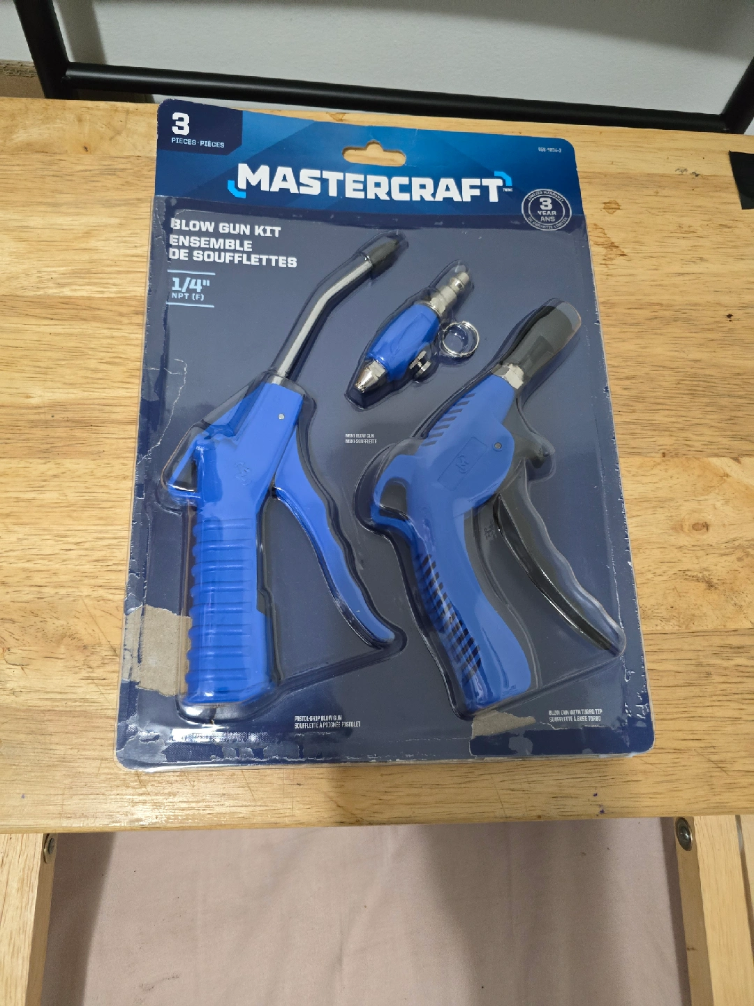 Selling a brand new Mastercraft Blow Gun Kit, still sealed in its original packaging! This kit includes three pieces and features a 1/4" NPT (F) connection. It also comes with a mini blow gun and a pistol-grip blow gun with a turbo tip