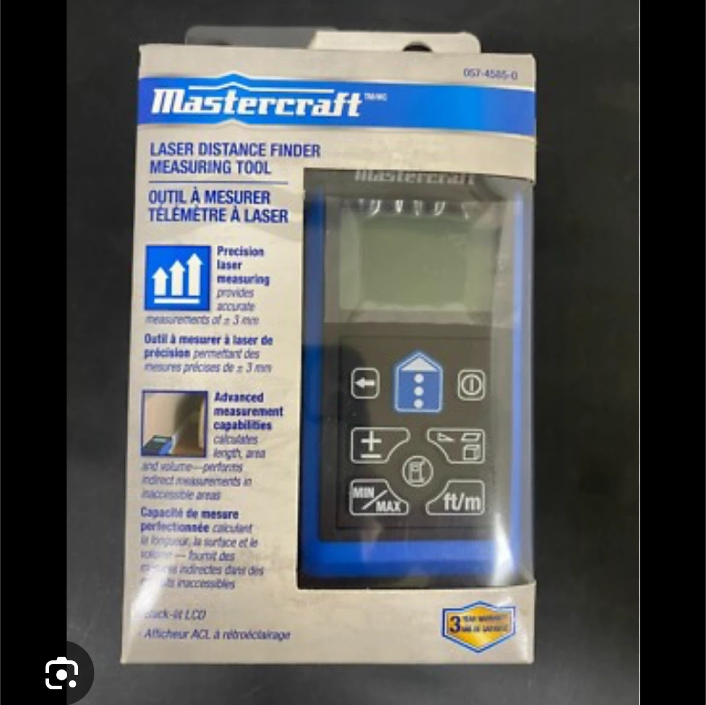 Selling a brand new Mastercraft Laser Distance Finder measuring tool, still in its original packaging! It offers precision laser measurements and calculates length, area, and volume. It can even perform indirect measurements in inaccessible areas. This tool has a backlit LCD for easy reading.