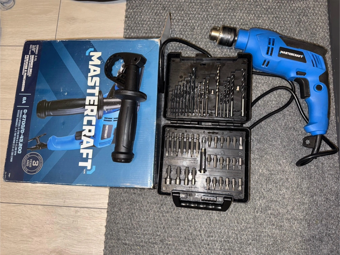 Powerful 6 Amp motor to cut through tough projects Heavy-duty, all-metal 1/2" keyed chuck Selection switch allows user to select rotation only, or rotation with hammering operation Lock on button helps reduce fatigue during extended use Rubberized, non-slip grip Auxiliary handle for added convenience Includes 50 accessories: (8) high-speed drill bits, (6) masonry bits, (6) wood-boring brad point bits, (4) nut drivers, (18) 1-inch screwdriver bits, (7) 2-inch screwdriver bits, stubby screw guide Built with durable materials to withstand rigorous use, ensuring long-term reliability and performance Designed to be compact and lightweight, making it easy to maneuver in tight spaces and reducing user fatigue The robust design helps manage dust and debris, maintaining performance and extending tool life