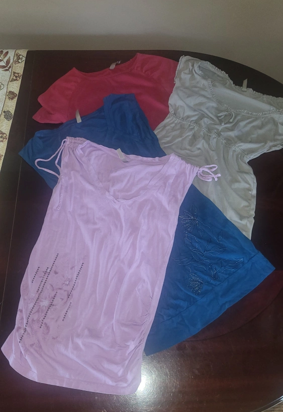 Get ready for that island holiday! Maternity summer tops by 'Thyme'. Like new condition. Size small...mauve, grey, cranberry, blue. $5 each or all 4 for $15.