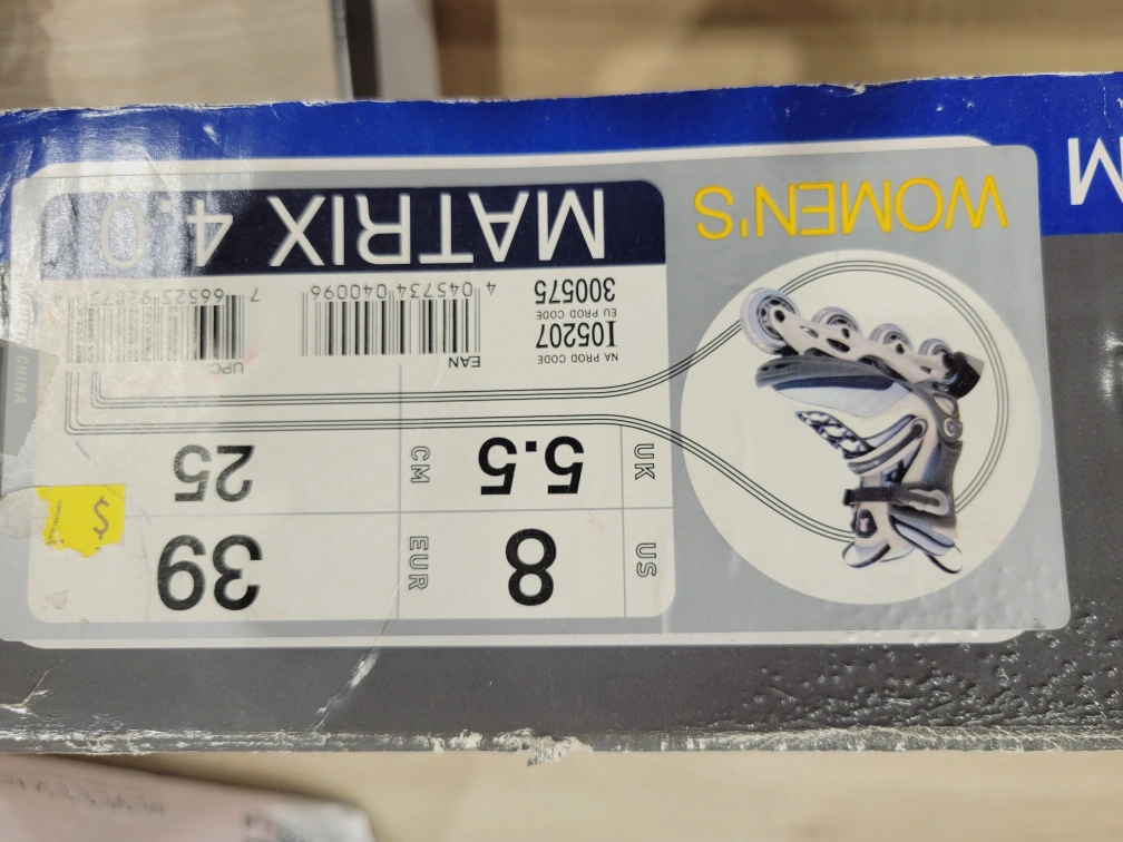 Selling a pair of women's Matrix 4.0 roller blades. They are a US size 8, EUR size 39, and UK size 5.5. Comes with the original box.