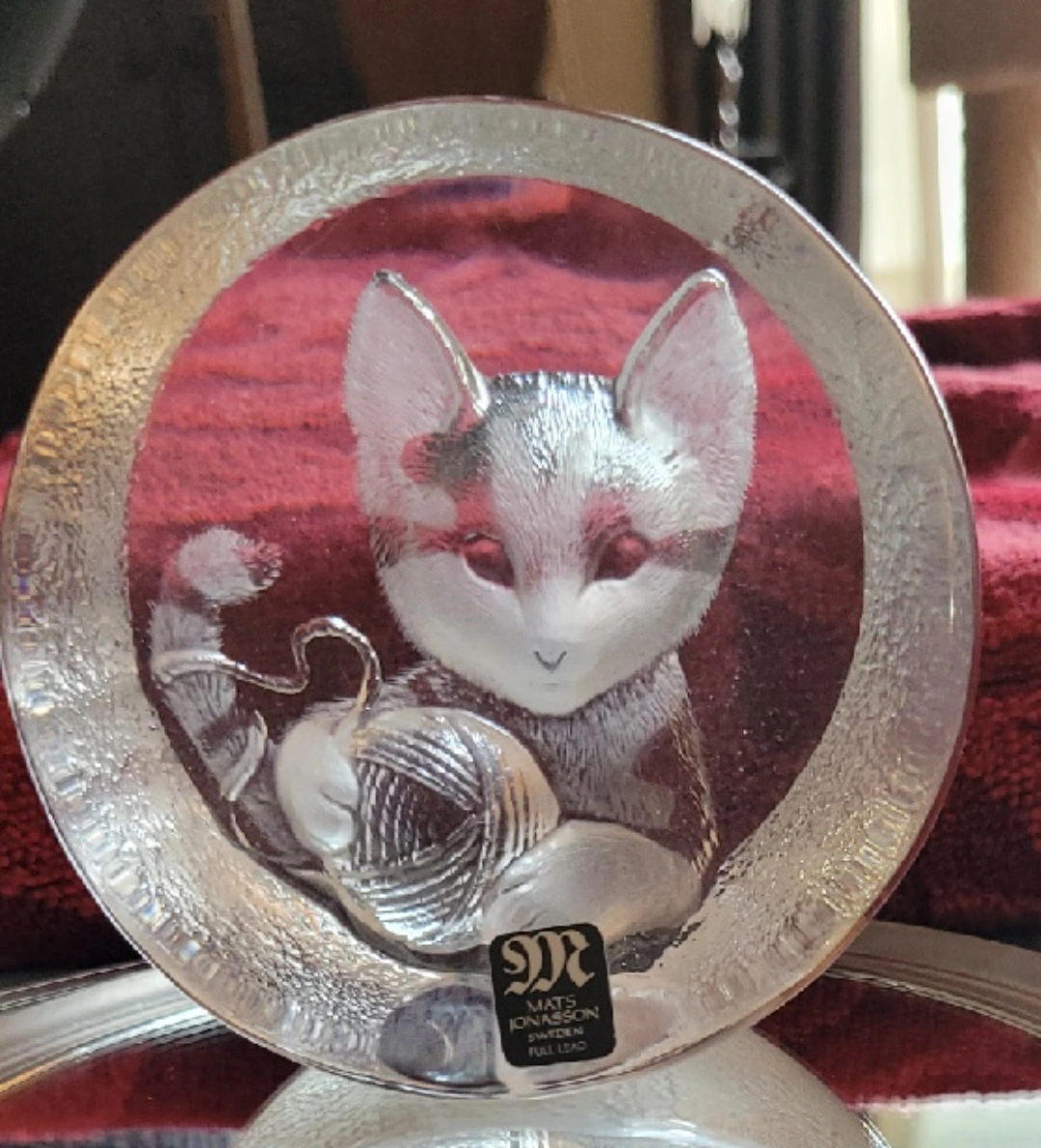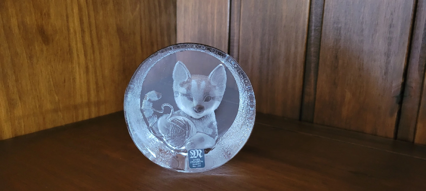 I'm selling a beautiful Mats Jonasson crystal art glass piece! It features an adorable kitten design. This piece is in great condition and would make a lovely addition to any home decor collection. The brand is Mats Jonasson Sweden.