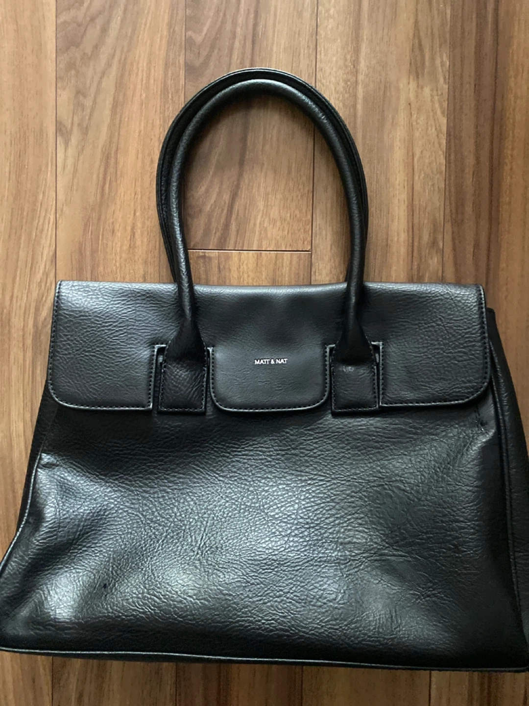 Selling a stylish black tote bag from Matt & Nat. The lining is made of 100% recycled plastic bottles, making it an eco-friendly choice. Perfect for everyday use!