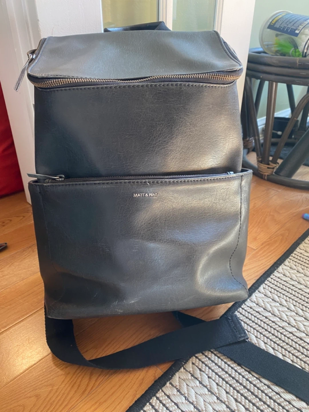 Looking to sell my Matt & Nat Dean Vegan Backpack in the vintage style. It's a stylish and eco-friendly backpack! The lining is made of 100% recycled plastic bottles. Originally bought for $215 CAD.
