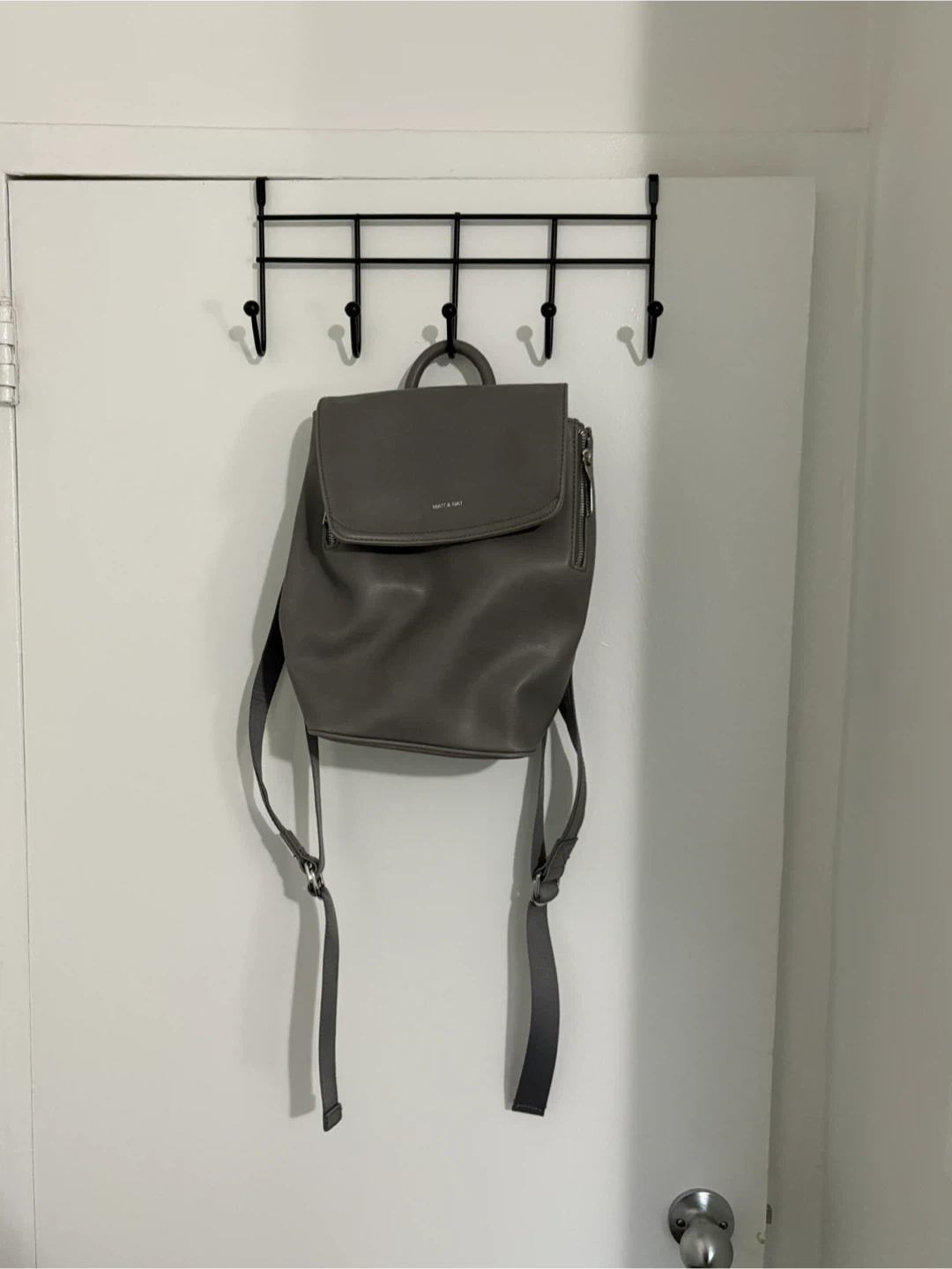 Matt & Nat backpack in a neutral gray colour. Straps are adjustable