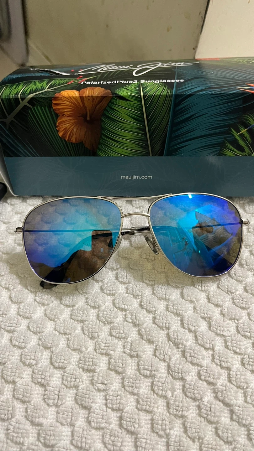 Selling a pair of Maui Jim sunglasses, model MJ-247. Cliff house model . These have blue Hawaii polarizedplus2 lenses and a titanium frame. Comes with the original box!