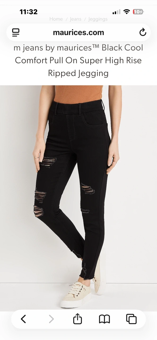Selling a pair of m jeans by maurices™ Black Cool Comfort Pull On Super High Rise Ripped Jeggings. They look great! I have two available in XS