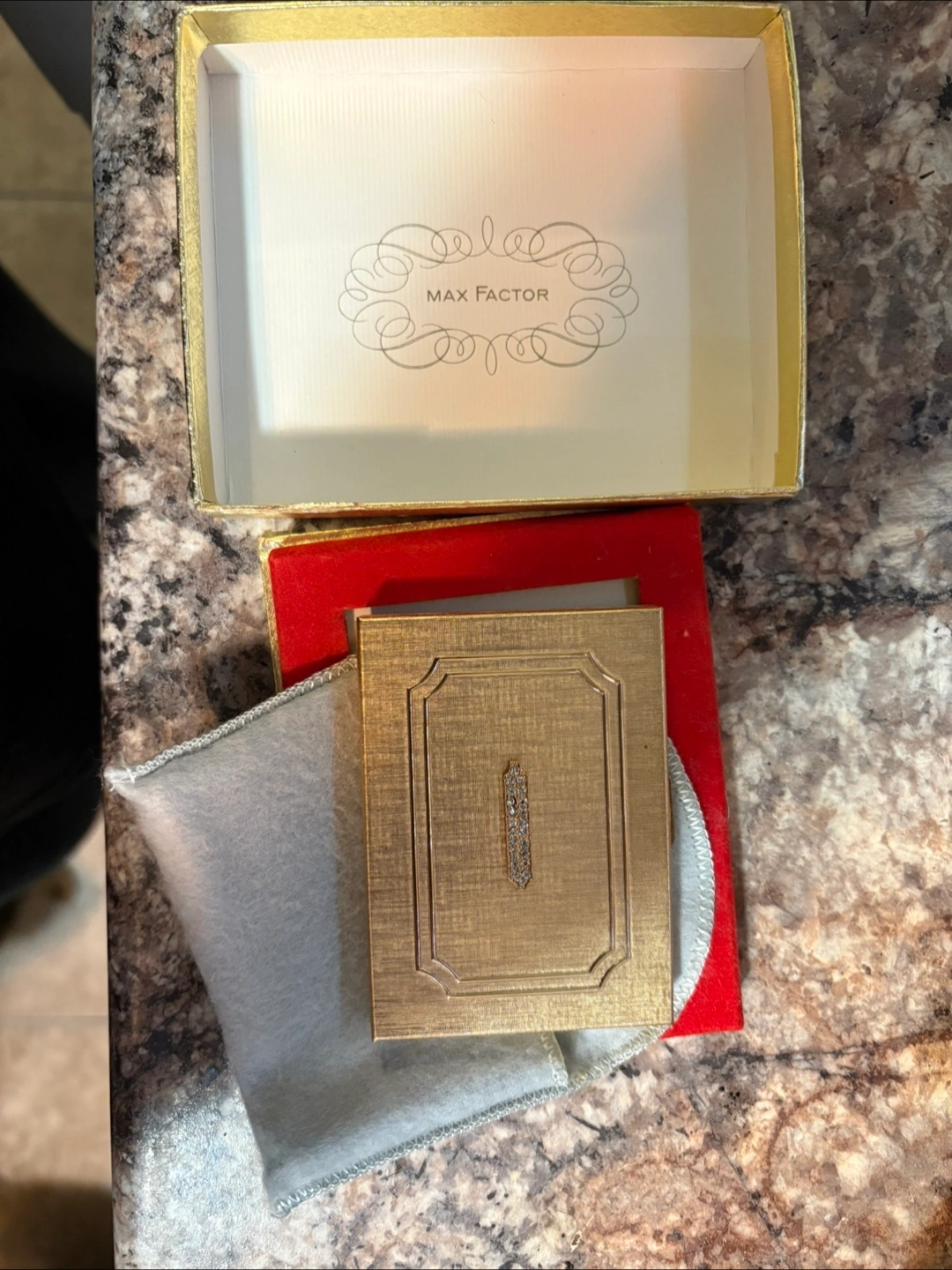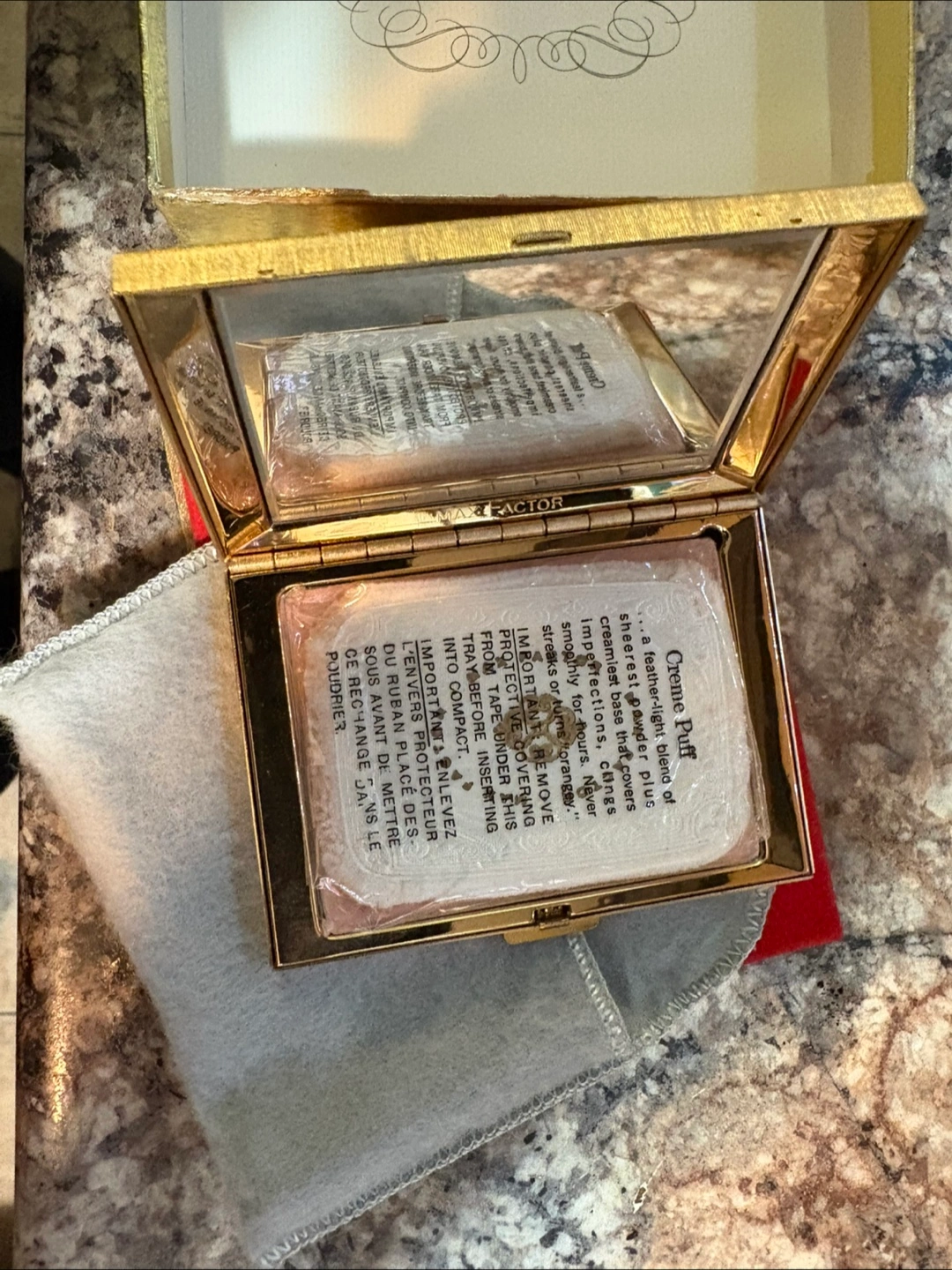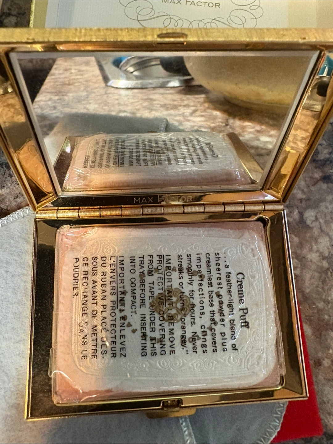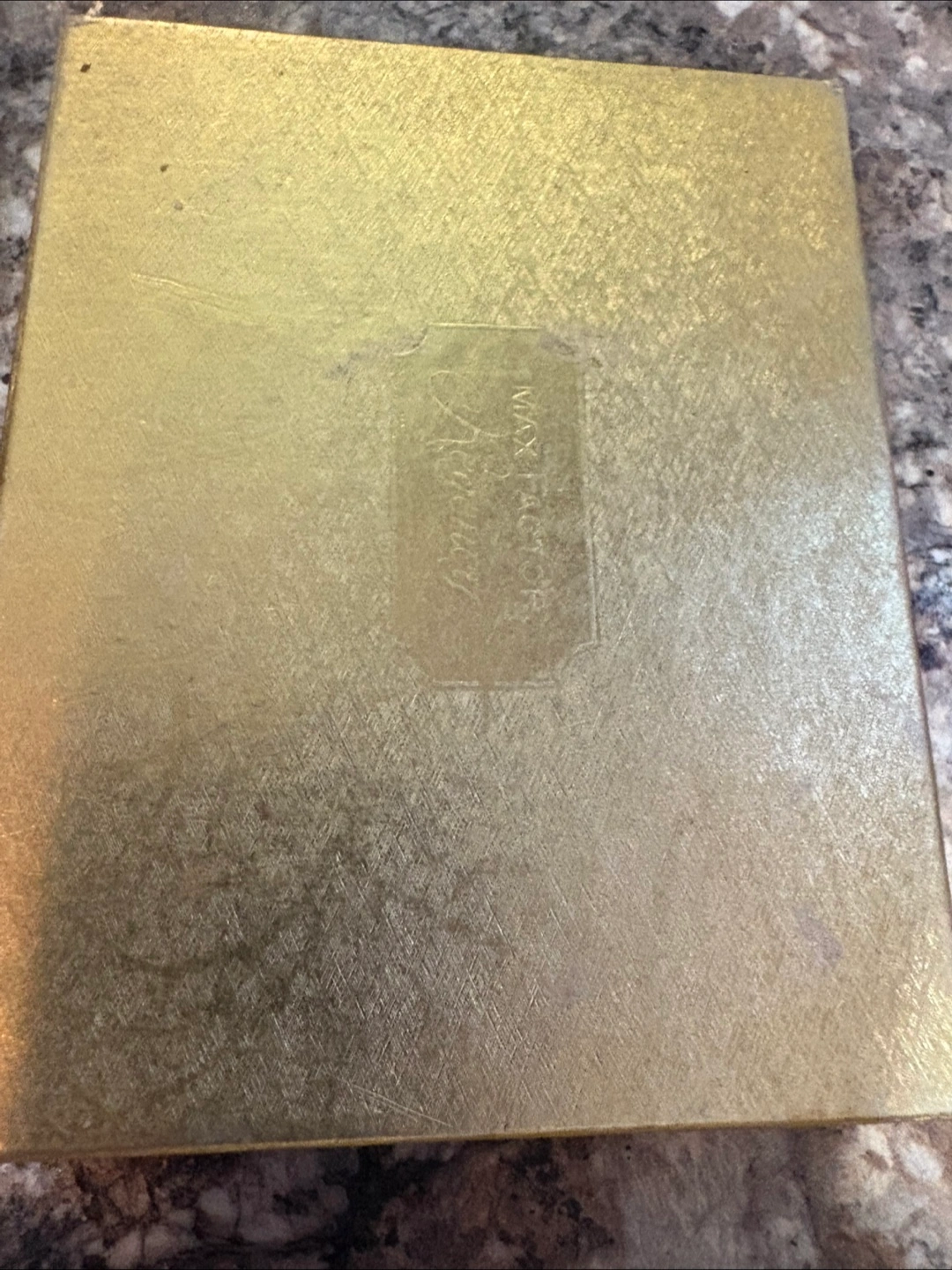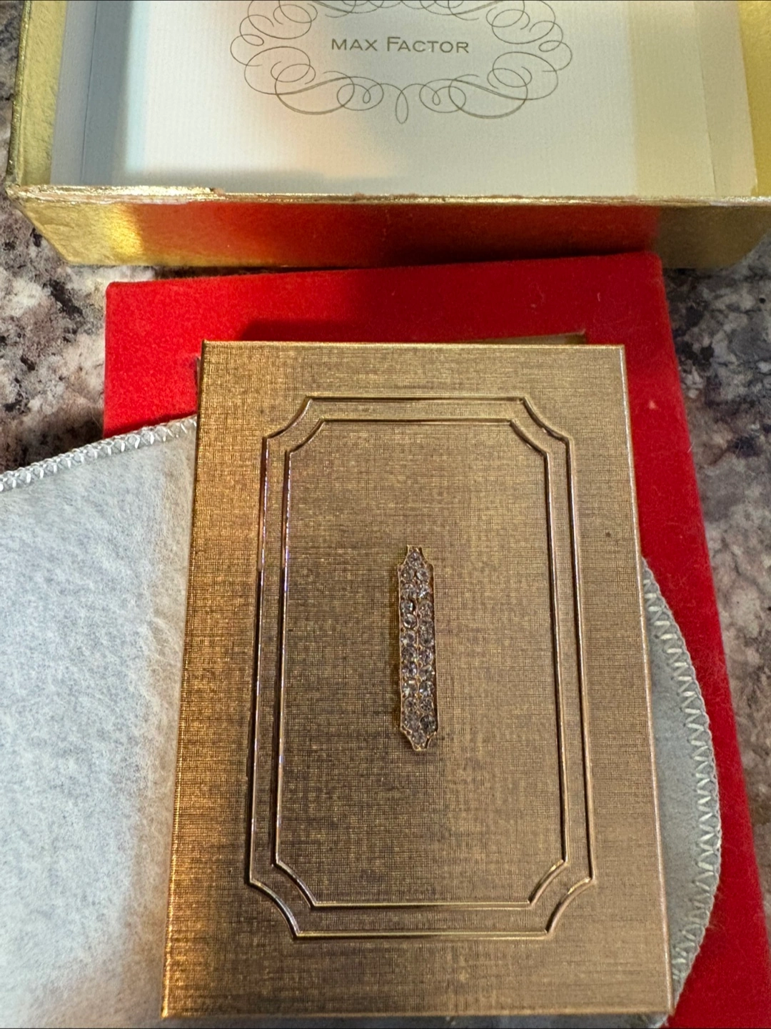 Max Factor Regency Golden Bouquet Powder Compact Thin Line 1960s Puff Full Vtg Brand New in box never used.
