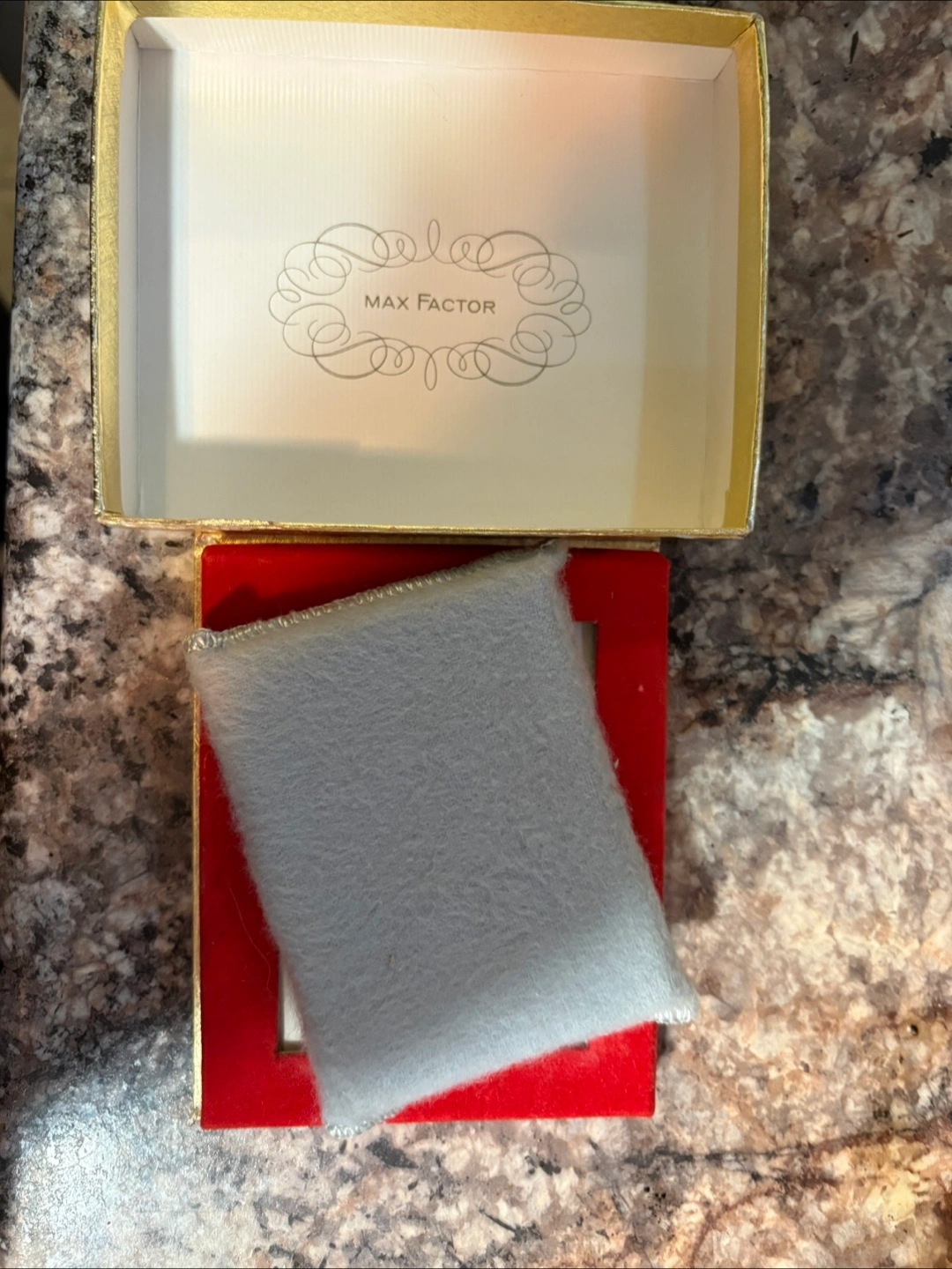 Show allMax Factor Regency Golden Bouquet Powder Compact Thin Line 1960s Puff Full Vtg Brand New in box never used.