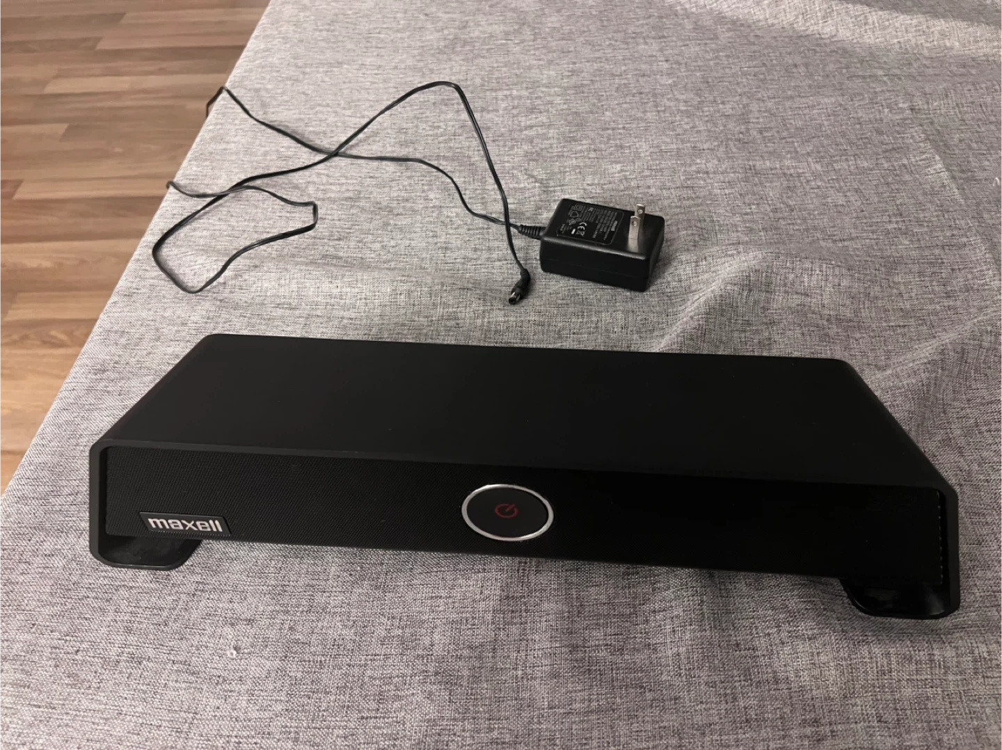 Selling a Maxell SS-212 stereo sound system soundbar. It comes with the AC adapter. It supports 100V-240V. The model number is 038964021DS1185.