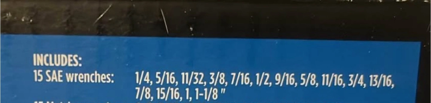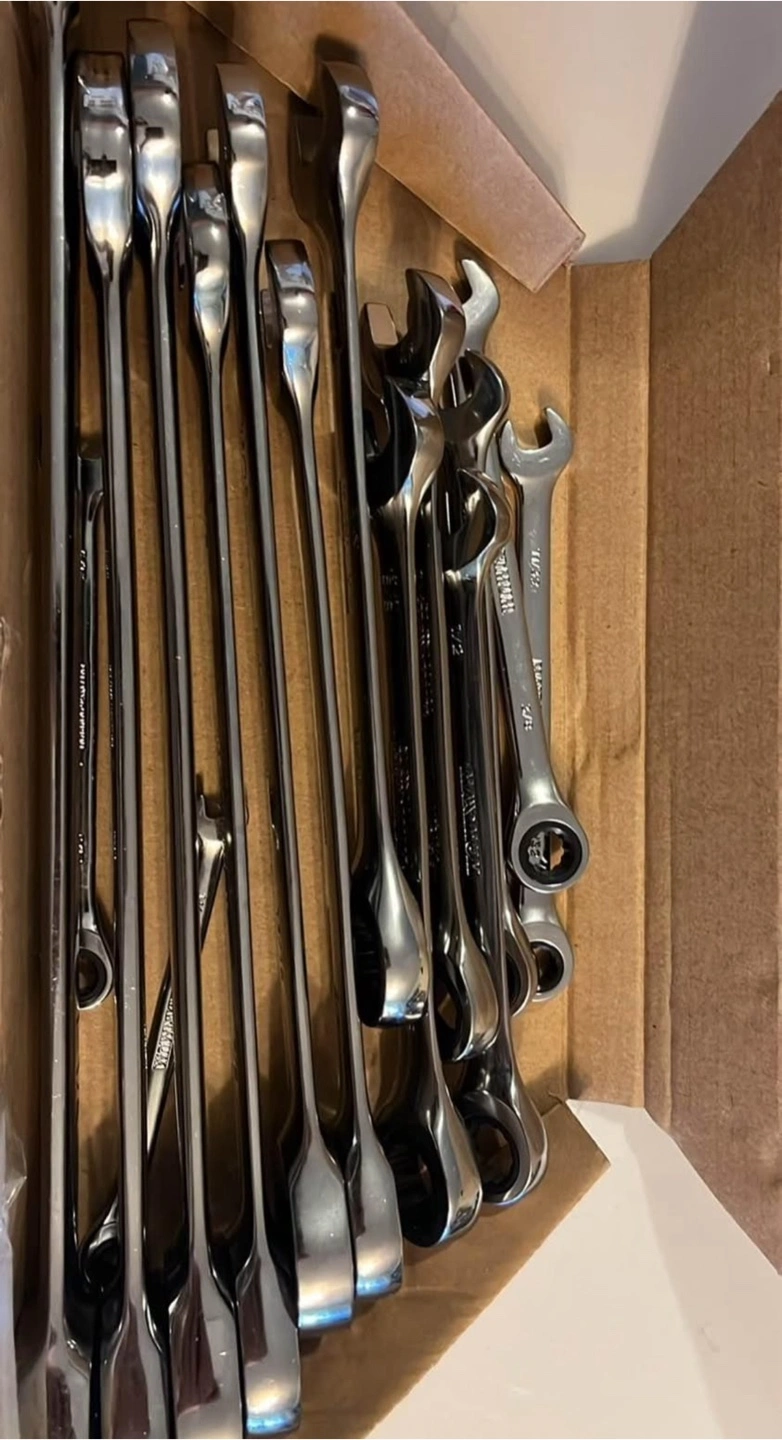 Selling a Craftsman 15-piece SAE wrench set. It includes wrenches in the following sizes: 1/4, 5/16, 11/32, 3/8, 7/16, 1/2, 9/16, 5/8, 11/16, 3/4, 13/16, 7/8, 15/16, 1, and 1-1/8 inches. The set is in good condition and comes in its original box