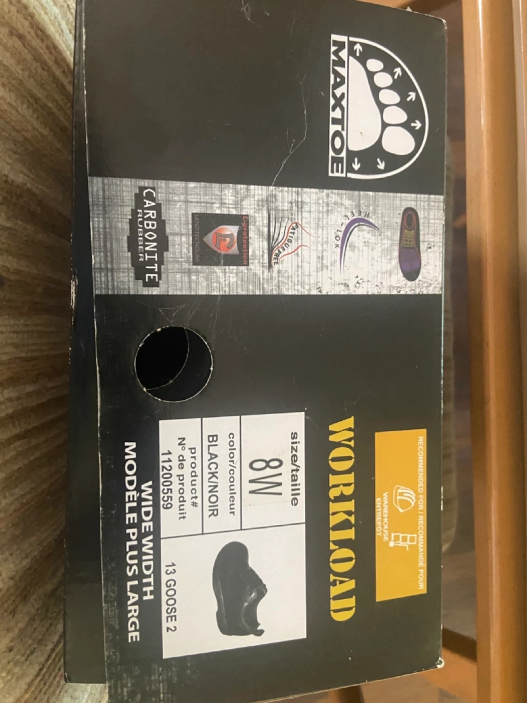 Selling a pair of MAXTOE Workload work shoes in black. They are size 8W and come with the original box. Great for anyone needing reliable and comfortable work footwear!