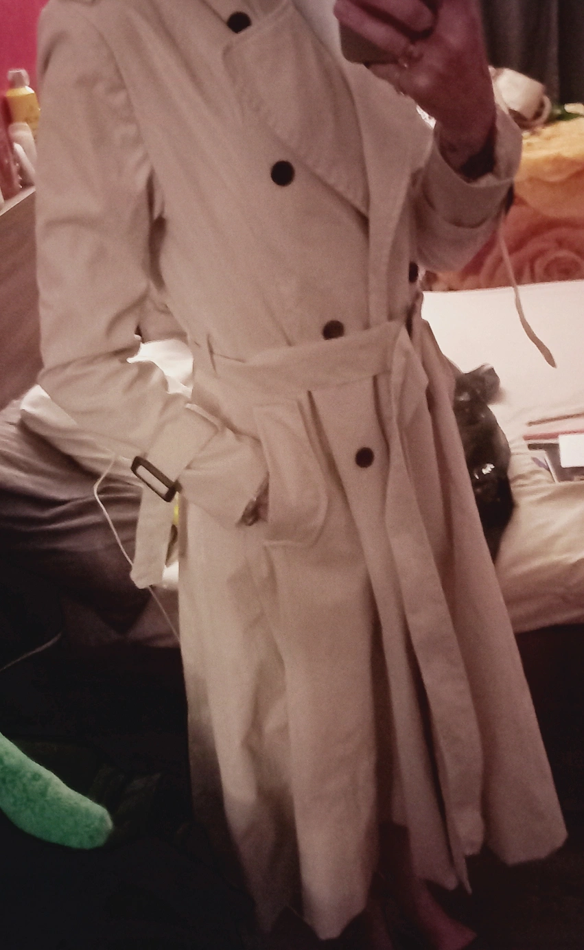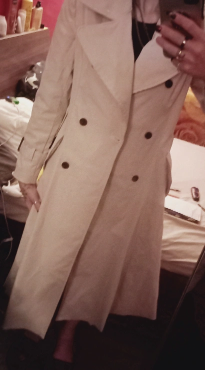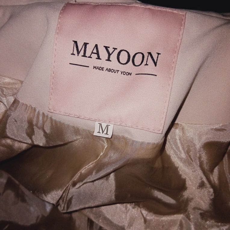 Selling a stylish Mayoon trench coat in size M! It's a beautiful neutral colour and would be perfect for spring or fall weather. It features a classic double-breasted design and a tie waist.