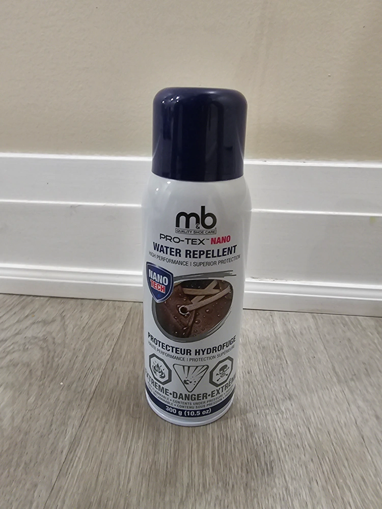 Keep your shoes looking their best with this MB Pro-Tex Nano Water Repellent! It offers high performance and superior protection, keeping your footwear safe from the elements. This can is 300 g (10.5 oz).