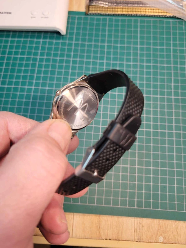 Capture a piece of Canadian sporting history with the 1998 McDonald's Canada Nagano Olympic Watch. A true vintage gem from the 1980s, this wristwatch celebrates the spirit of the Olympic games with its striking multicolor dial and a two-piece strap that comfortably fits unisex adult wrists. The silver stainless steel case and bezel provide a sleek contrast, while the black plastic band adds a durable and practical touch. Function meets style in this sporty timepiece, featuring a reliable quartz movement and a convenient push/pull crown for easy adjustments. Its round, analog display ensures timekeeping is both effortless and stylish. Although it comes without its original box, the watch's charm lies in its historic insignia and the timeless design that commemorates the iconic 1998 Nagano Olympics.