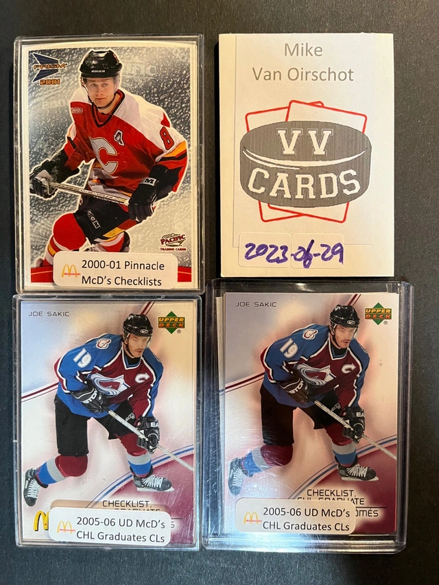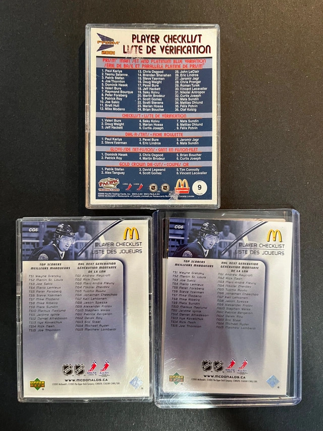 FOR SALE ONLY Complete sets of McDonald’s hockey card checklists for sale. $5 each set 2000-01 Pinnacle (6 cards) 2005-06 Upper deck CHL graduates (6 cards).