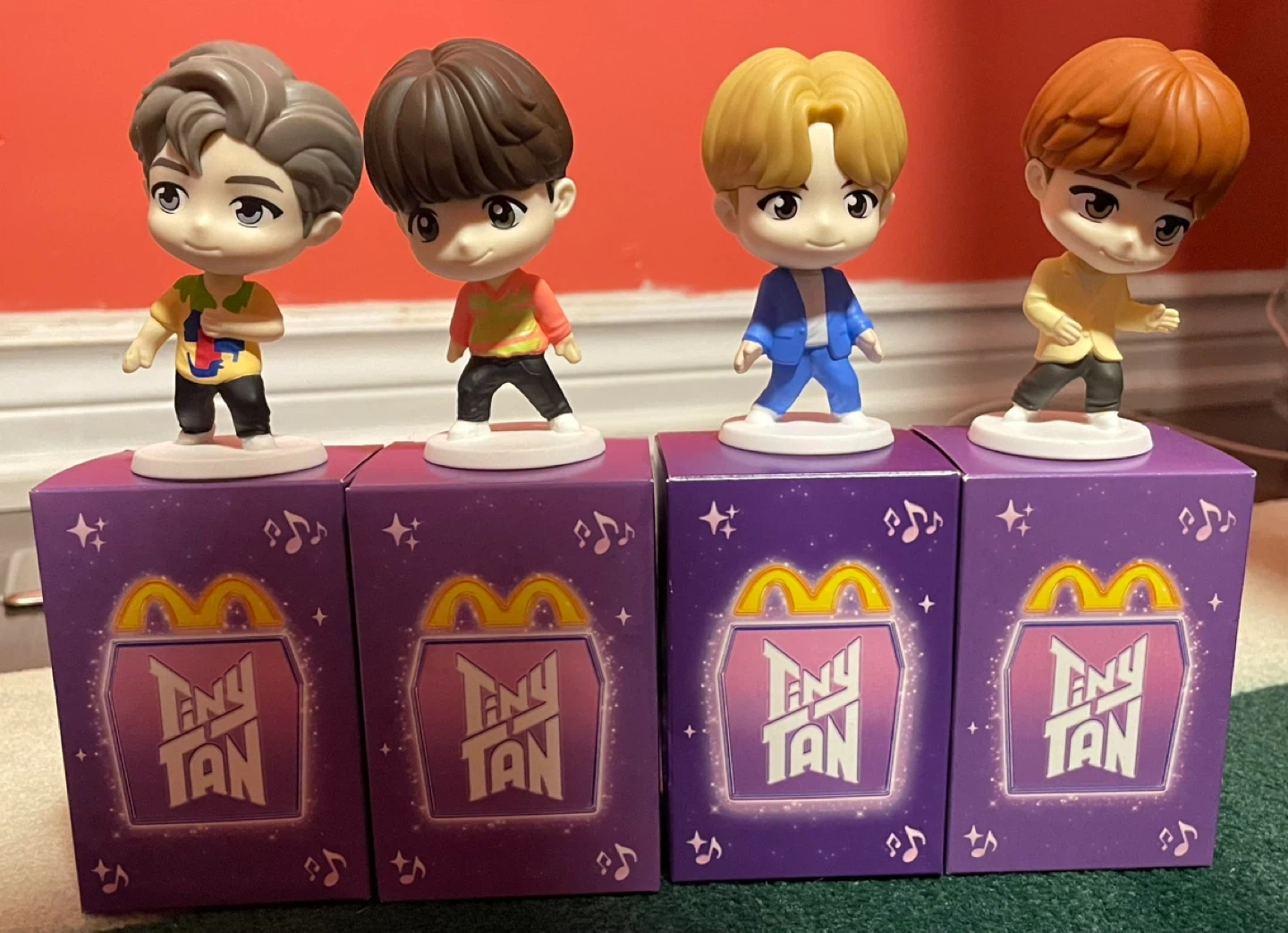 Selling these adorable McDonald's TinyTAN figures for $3! Each one comes in its original purple box and card. I’m also willing to trade RM, Suga, J-Hope and Jimin for a V encore edition!