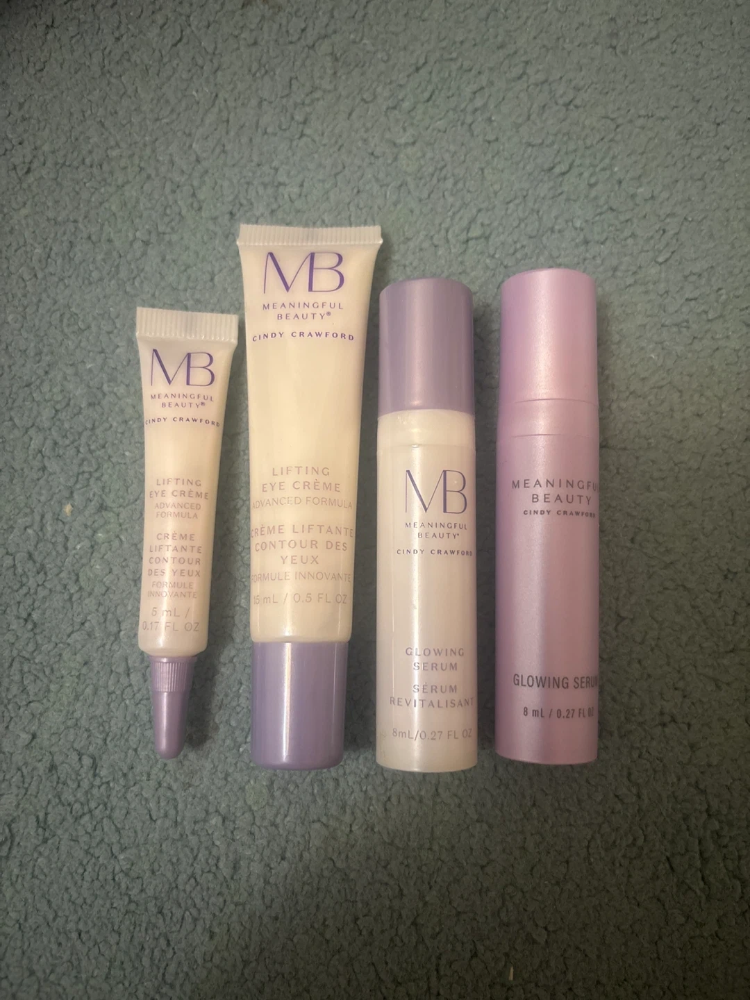 Selling a set of new Meaningful Beauty products! This includes the Lifting Eye Cream (Advanced Formula) and the Glowing Serum. Perfect for anyone looking to add some radiance to their skincare routine. The sizes are 5ml and 15ml.