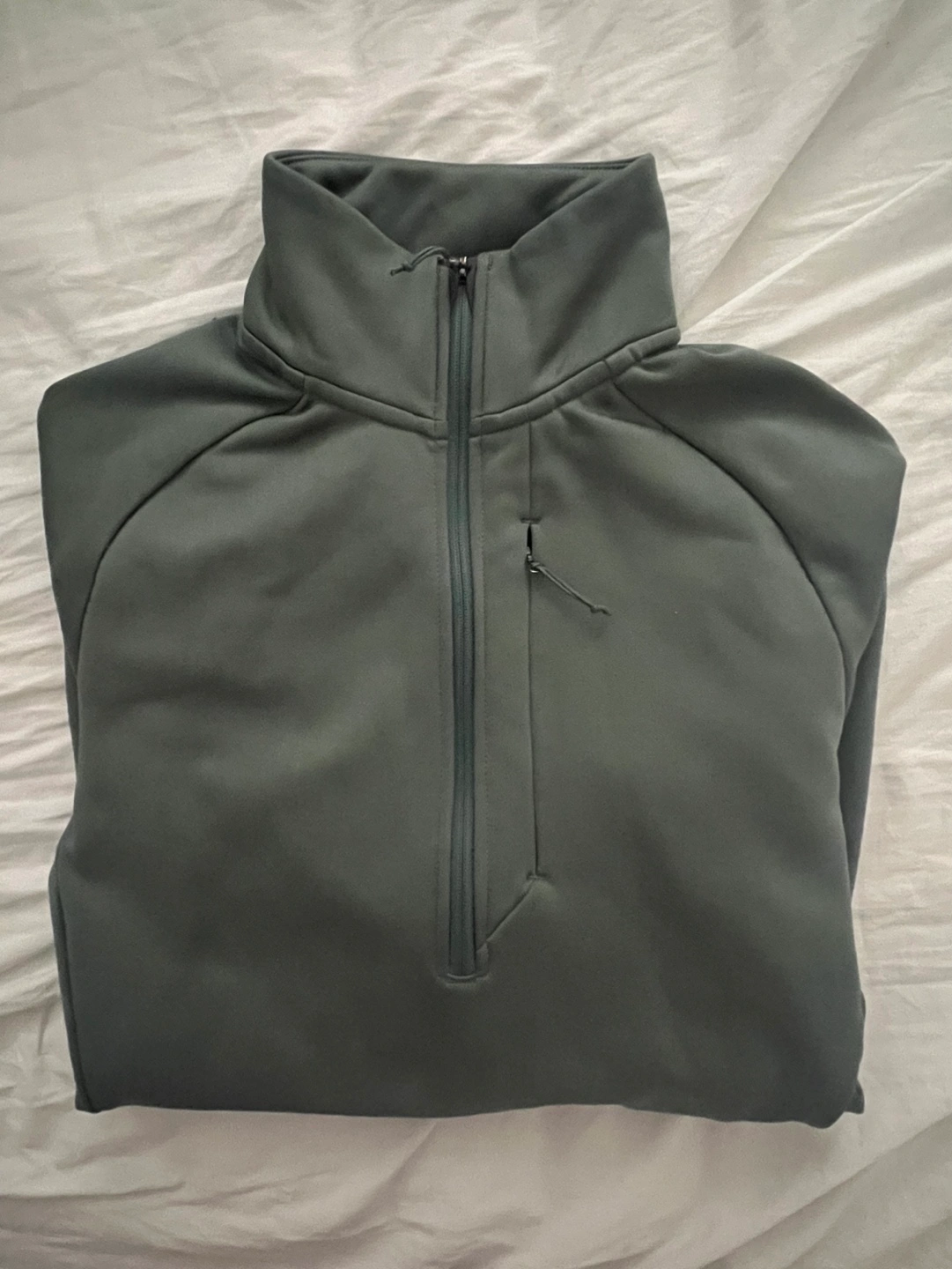 Women’s green mid-layer fleece. Half-zip design. Long sleeves. Great for layering. Worn a couple times! Super versatile, stretchy, soft and comfortable. Thin yet warm, it’s made from a durable thermal fleece material that’s easy to move in, whether you’re scrambling up cliffs or setting up the tent. The zippered chest pocket is large enough for a snack or phone, and the long sleeves will keep you cozy. —- I’m moving and will be trying to clear my closet. Check out the other items on my list for a good deal! :)