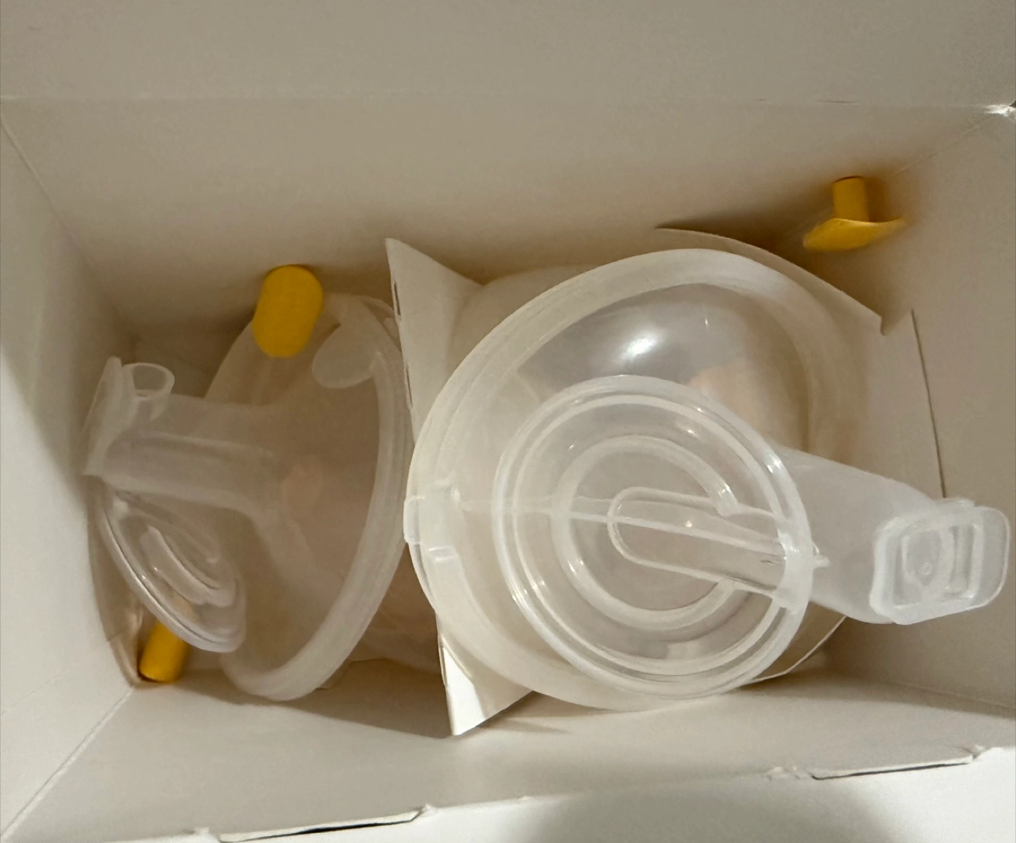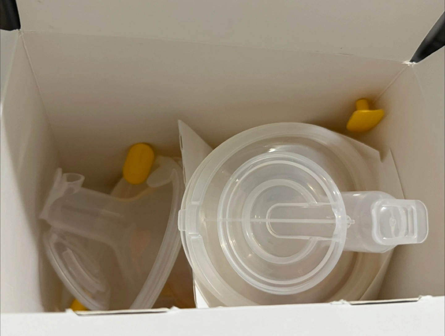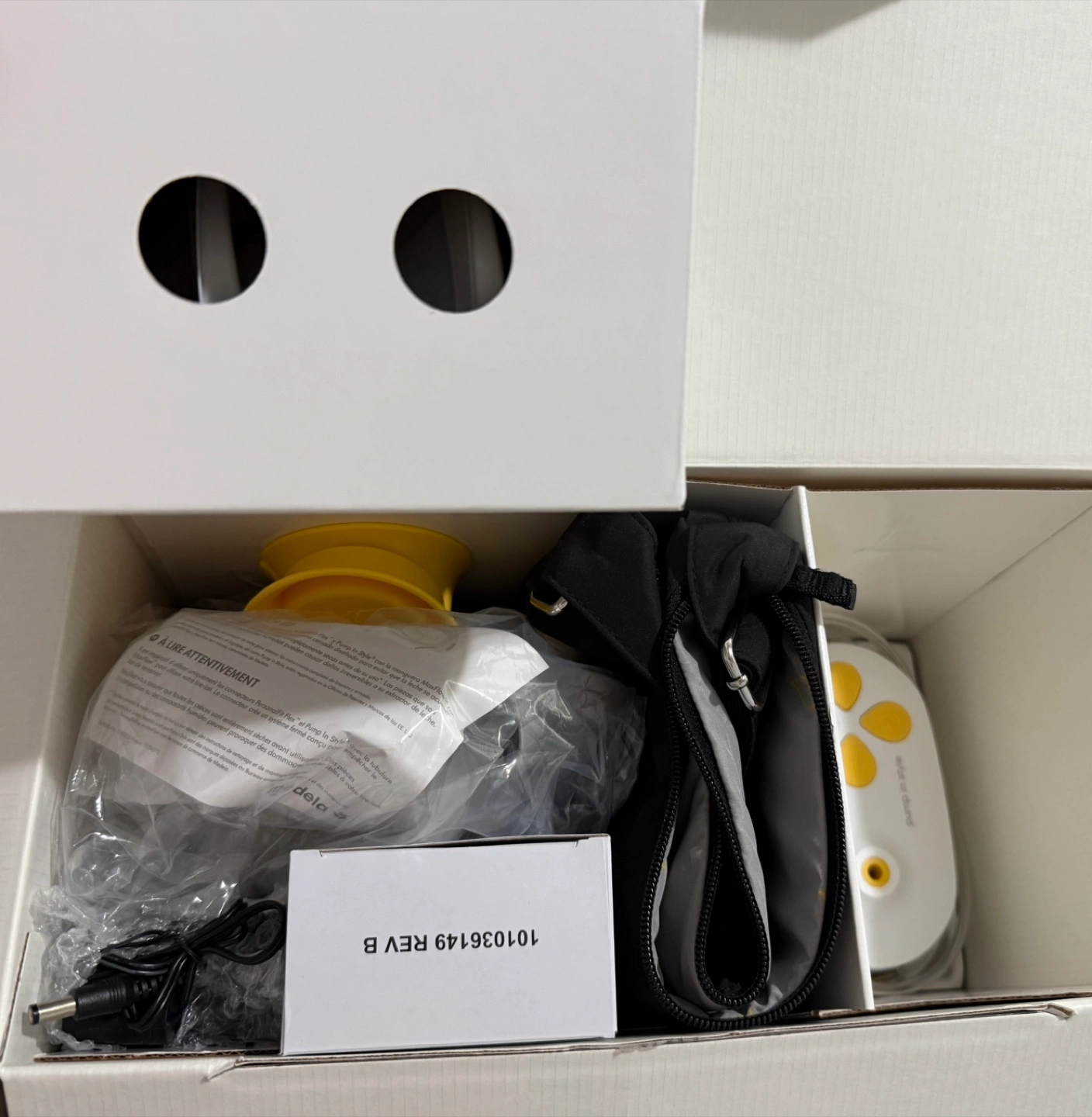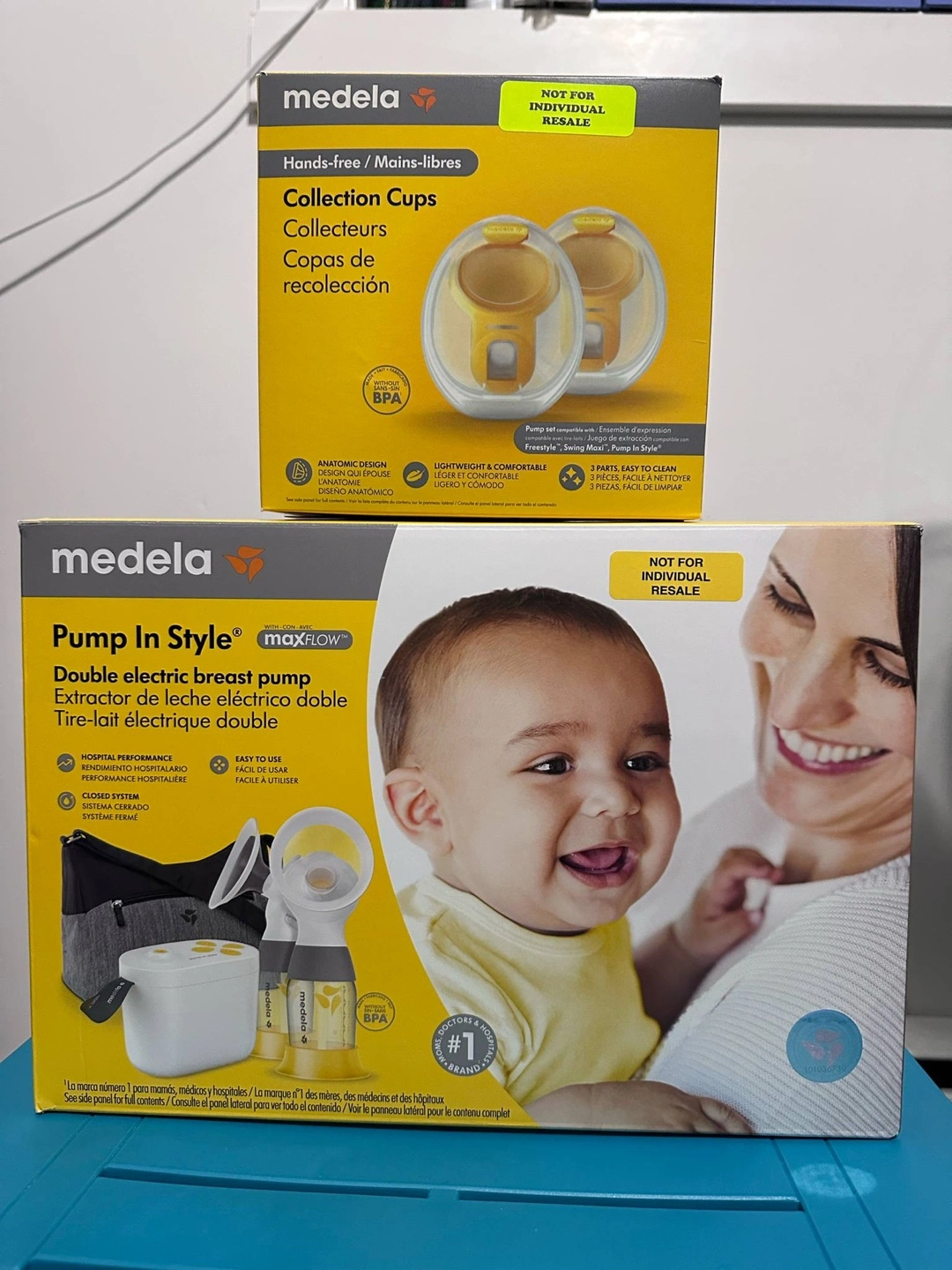 Double electric breast pump. Includes carrying bag, two bottles, personal fit flanges, and rechargeable battery pack. Excellent for pumping on the go. Used several times only; switched to wireless pump; retails for $248 plus tax