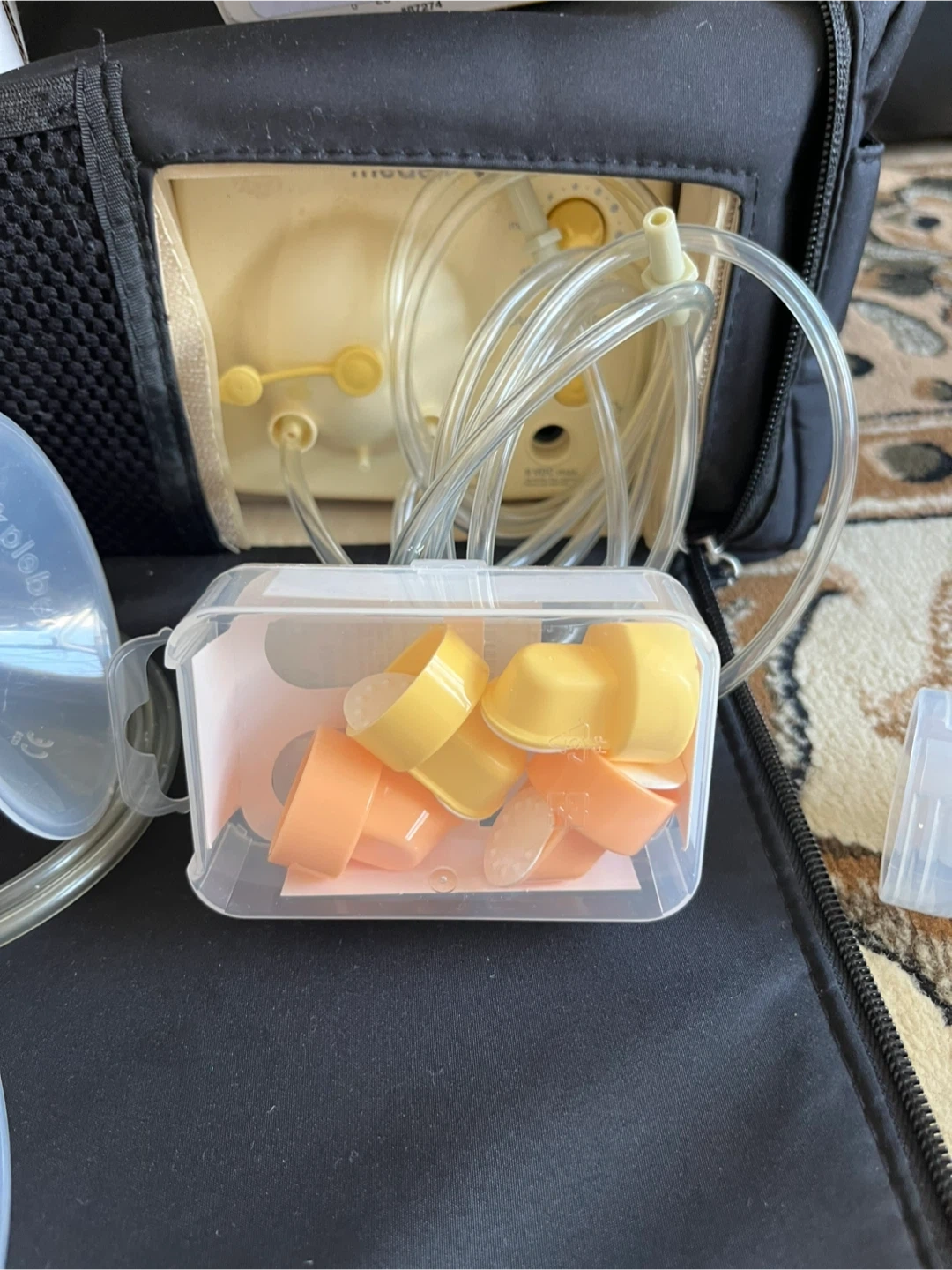 Selling a Medela Pump In Style Advanced breast pump set. It comes with all the accessories you see in the pictures, including the pump, tubing, flanges, bottles, and a carrying bag. Perfect for new moms!
