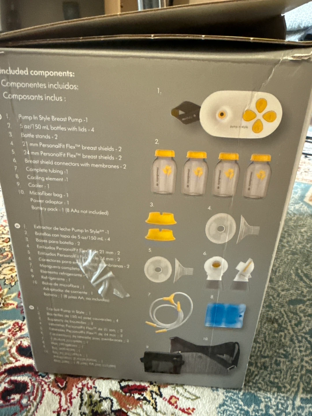 Selling a Medela Pump In Style MaxFlow breast pump. It comes with all the included components, such as: - Pump in Style Breast Pump - 1 - 5 oz/150 mL bottles with lids - 4 - Bottle stands - 2 - 21 mm PersonalFit Flex breast shields - 2 - 24 mm PersonalFit Flex breast shields - 2 - Breast shield connectors with membranes - 2 - Complete tubing - 1 - Cooling element - 1 - Cooler - 1 - Microfiber bag - 1 - Power adapter - 1 - Battery pack - 1 (8 AAs not included) Box is included!
