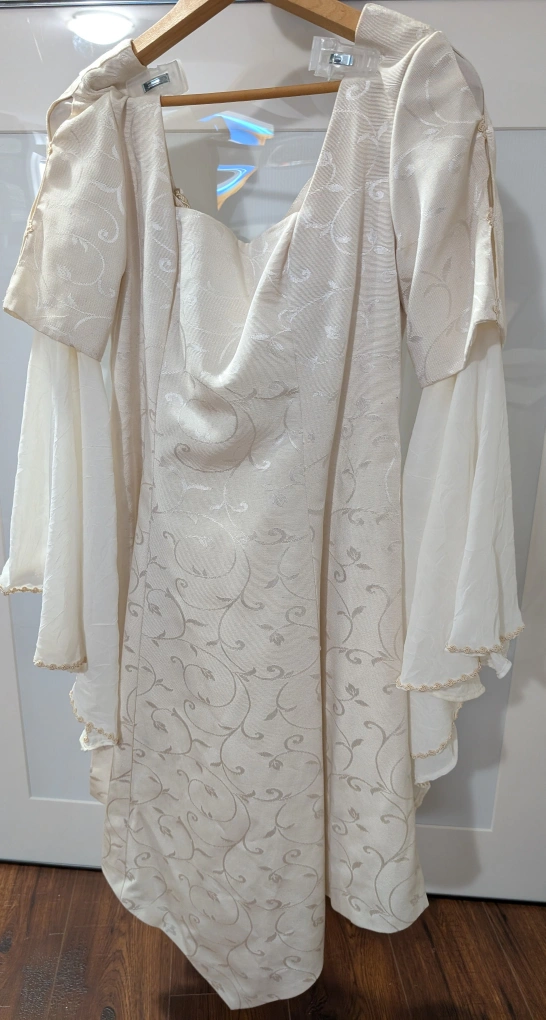 Medieval dress, worn once for a wedding. size large. comes with head band and purse. Beautiful details and lace back.
