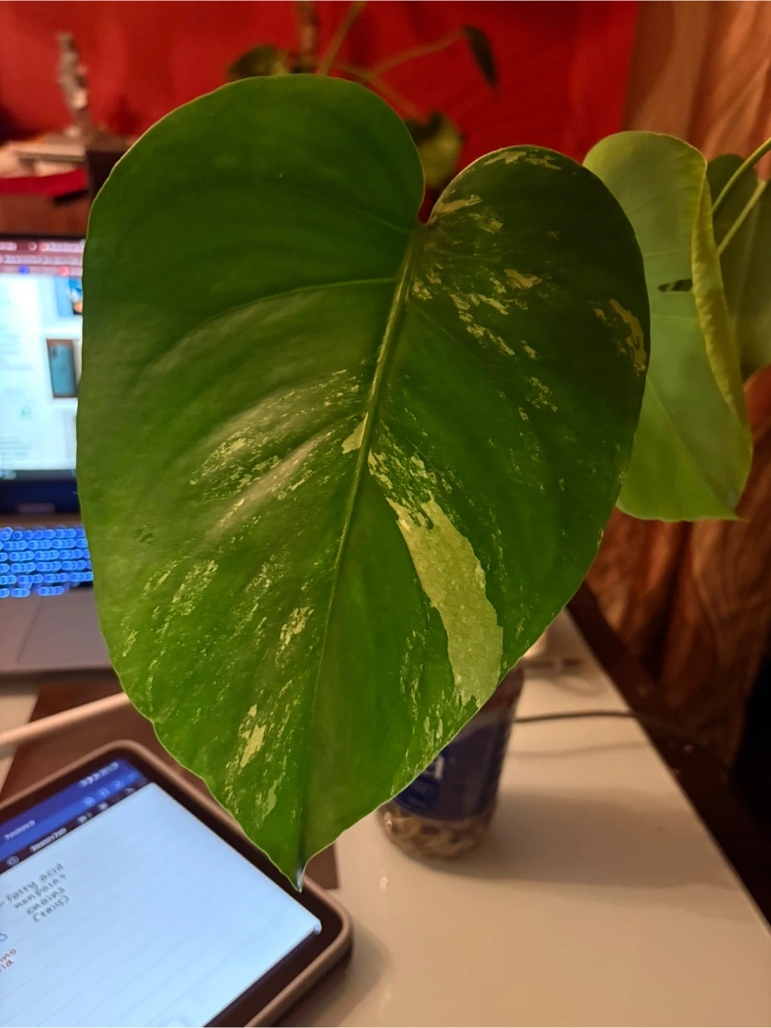 - medium Varigation monstera Albo with strong roots - can pot for you in a chunky soil for five dollars Pick up and cash only