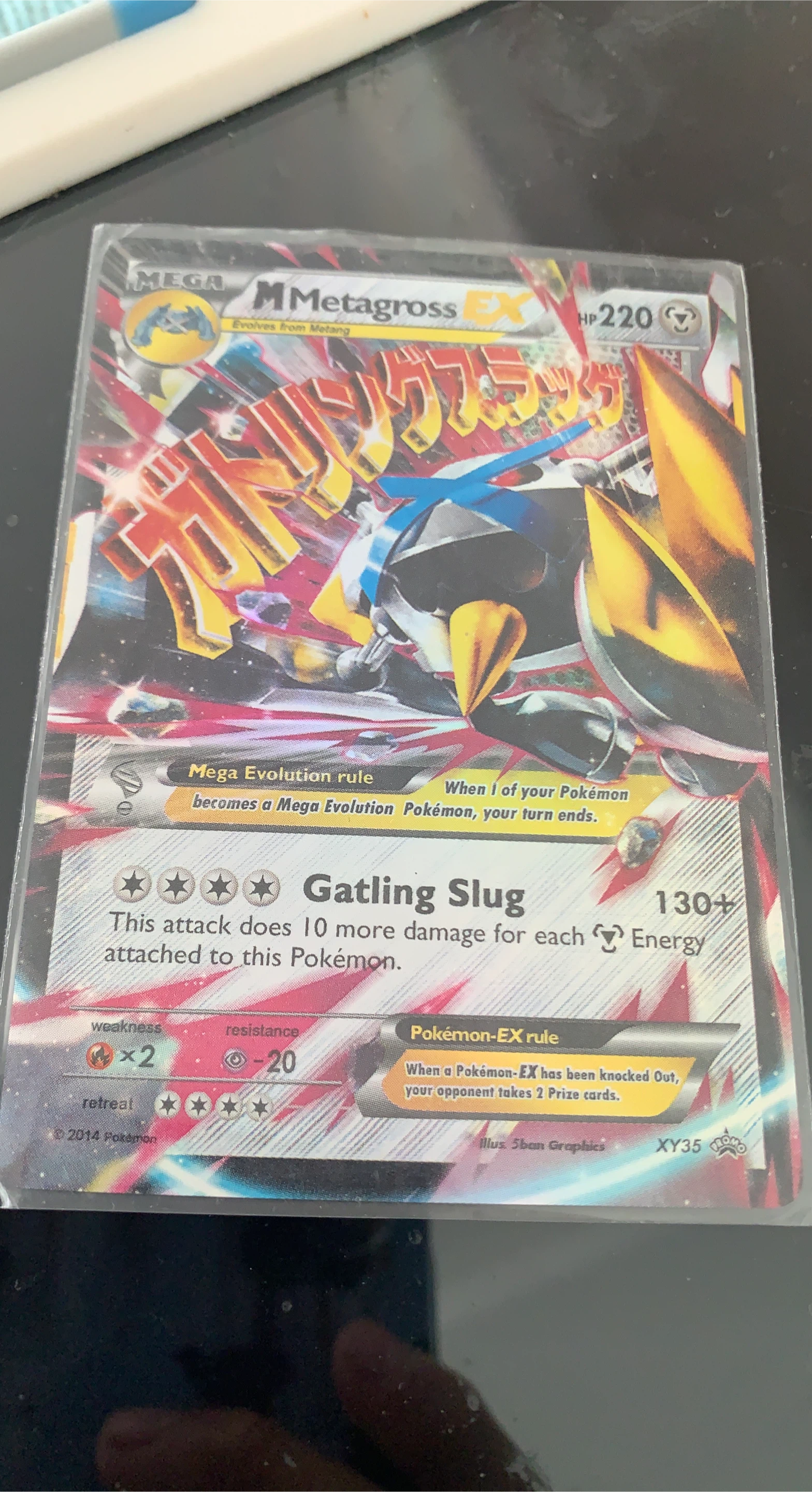 Selling a Mega Metagross EX Pokemon card. It has a Gatling Slug attack. The card is from the XY35 promo set and was printed in 2014