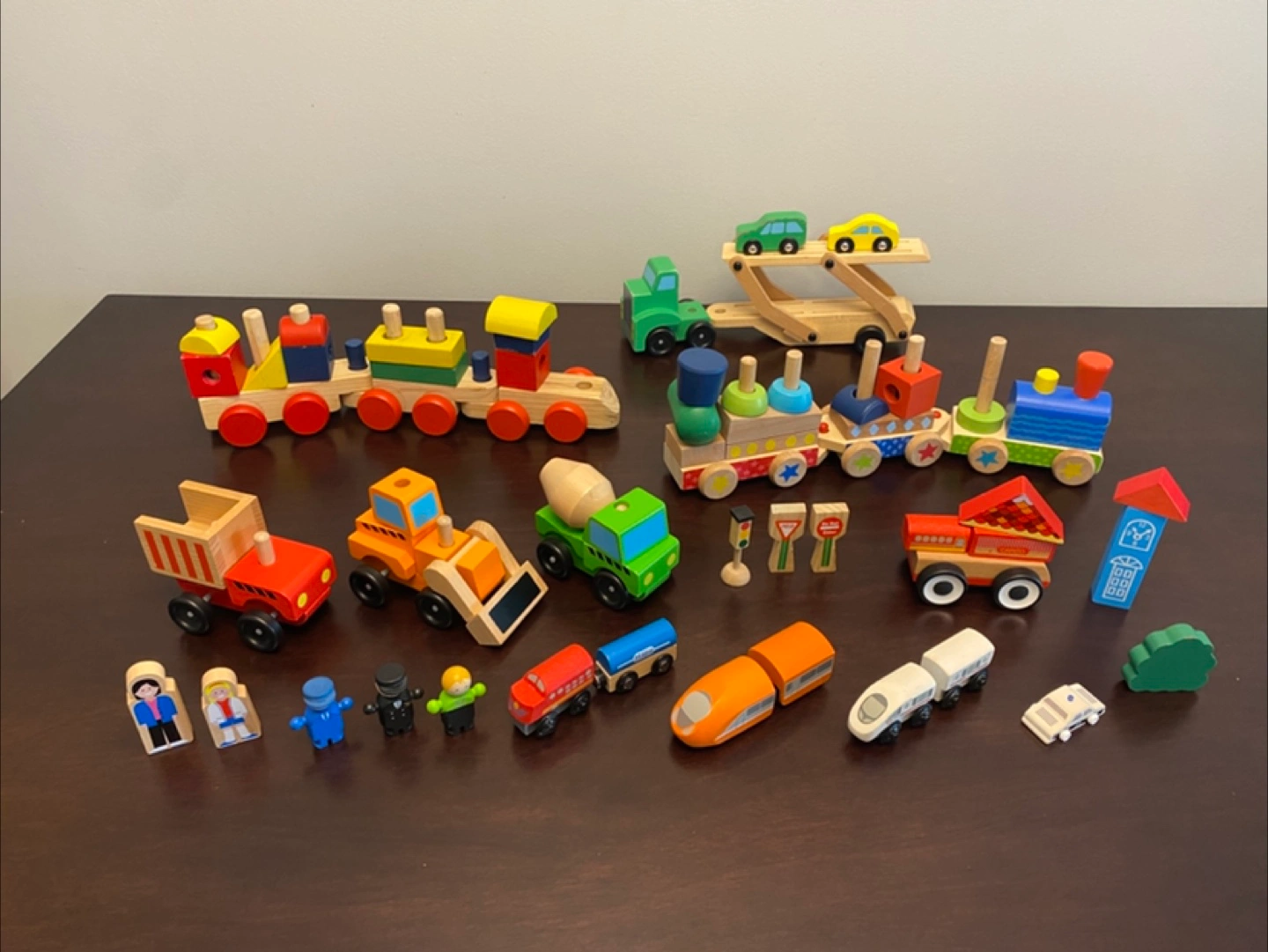 Selling wooden train sets and construction vehicles. These sets are not complete, but they include a variety of colourful trains, cars, figures, and accessories for hours of creative play. Great for kids of all ages to develop their imagination and motor skills. It's a fun and engaging toy set that will bring joy to any child! All for just $20 From clean, pet-free, smoke-free home Pick up only in Acadia SE Price is firm Please check my other ads