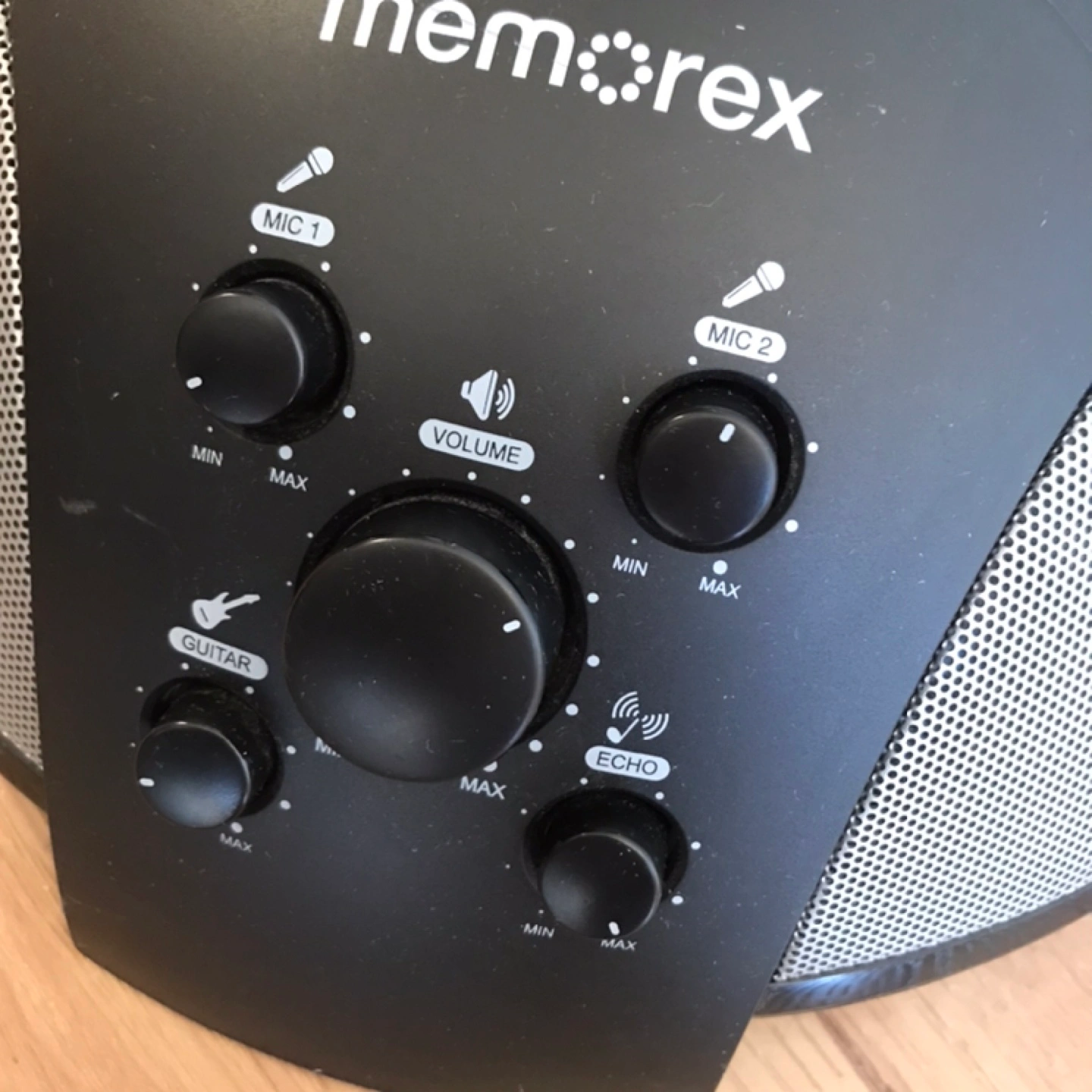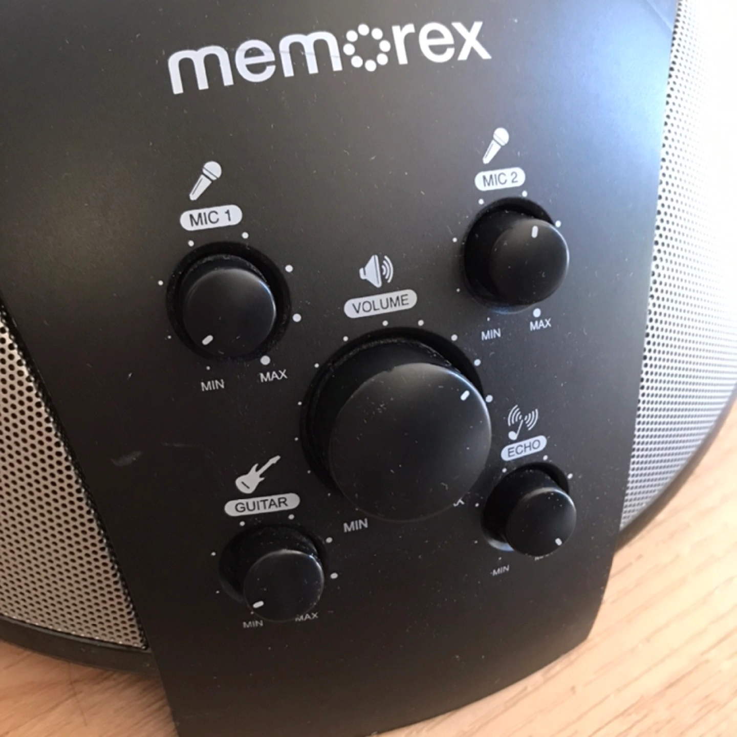 Get ready to sing your heart out with this Memorex SingStand! It has inputs for two microphones, a guitar, and aux in, plus a headphone jack. The microphone input on the top doesn’t work, but the second microphone input and the other inputs all work. You can use it with anything with a headphone jack such as a laptop, tablet or cellphone. Non smoking, dog/cat free home. Cash only. Cross posted. No holds.