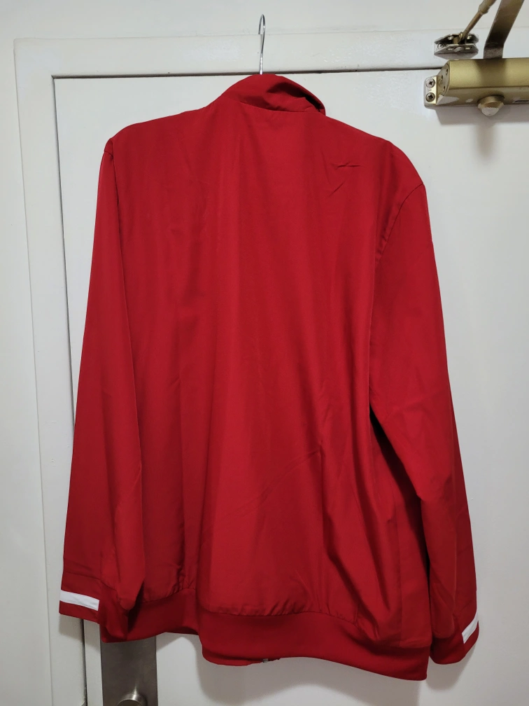 Red Adidas track jacket. Full zip closure. White accents on cuffs and hem. Good condition. -Cash only. Pickup only. -House with pets♥️