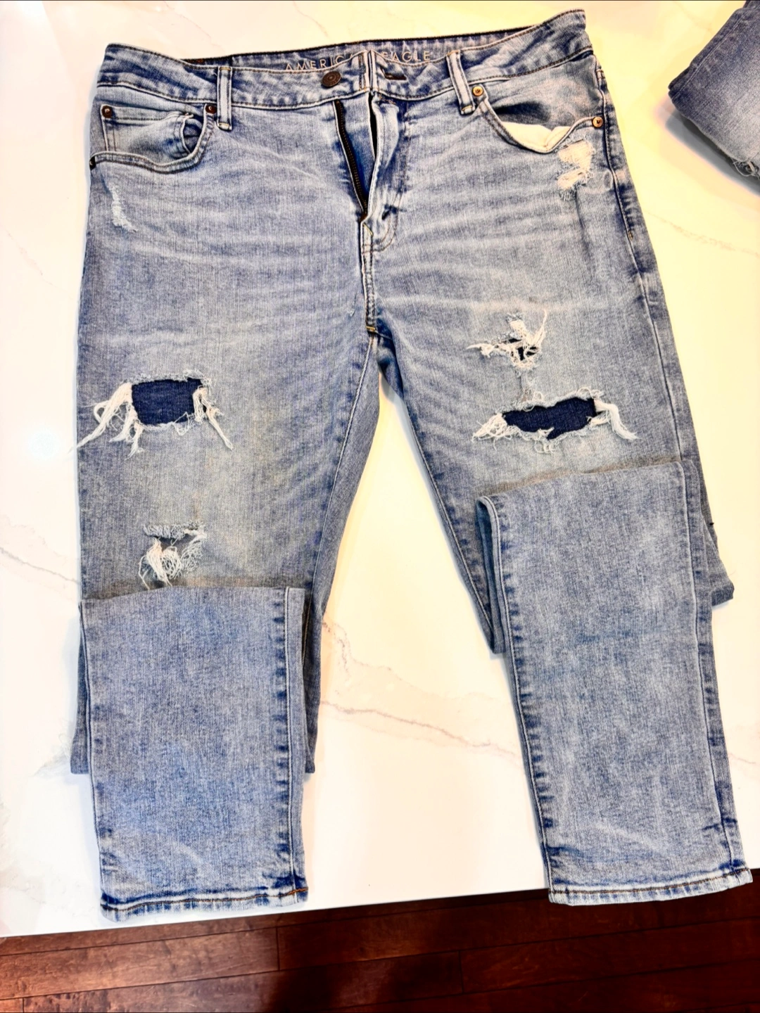 American eagle jeans 32-34x 34 length in great condition and one pair is new. A couple American eagle and Tommy shirts all good condition medium sized Only selling as a LOT. Will NOT seperate. No HOLDS. Must pick up $80 FIRM