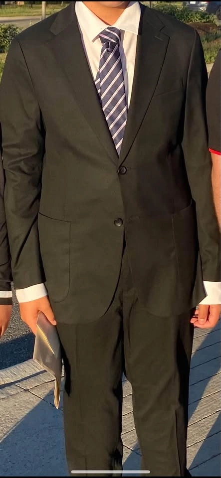 Worn once for graduation Jacket 42 regular Pants 36 waist 30 Length Shirt Large *tie not included Retailed for over 500. Pickup Mississauga road and Sandalwood. If ad is up it’s available.