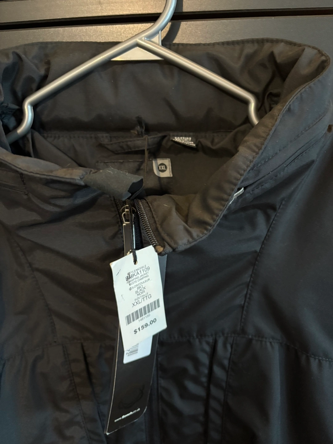 Size XXL - Black - Hood zips into collar Water resistant - great for spring/fall weather
